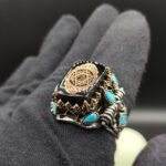 Taşı çevreleyen detaylı çerçeve işçiliği ve yan yüzeylerdeki kabartma motifler, modele derinlik ve karakter katar. 925 ayar gümüş gövde, oksitli detaylarla güçlendirilerek taşın rengini daha da ön plana çıkarır.