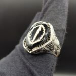 Anlamlı semboller taşıyan, gösterişli ve karakterli bir erkek yüzük modelidir.