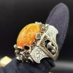 Bu model, iri ve dikkat çekici yapısıyla öne çıkan 30 gram ağırlığında özel tasarım erkek yüzüğüdür. Yüzüğün merkezinde büyük ve bombeli, çok yüzeyli (fasetli) şeffaf bir taş yer alır.