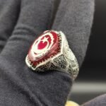 925 Ayar Gümüş 19 Gram Erkek Yüzük Kırmızı Mineli Ay Yıldız Taşlı Özel Tasarım