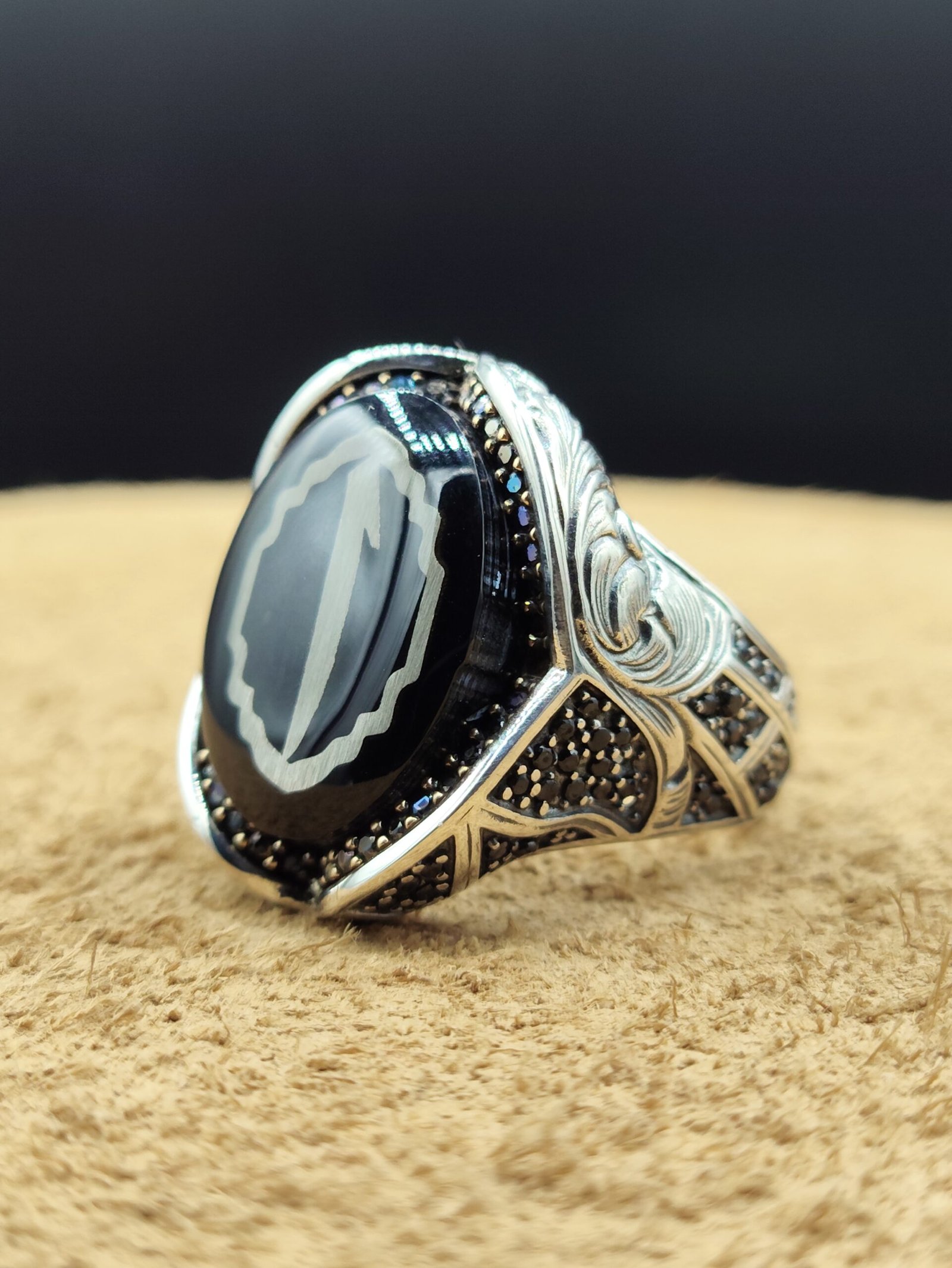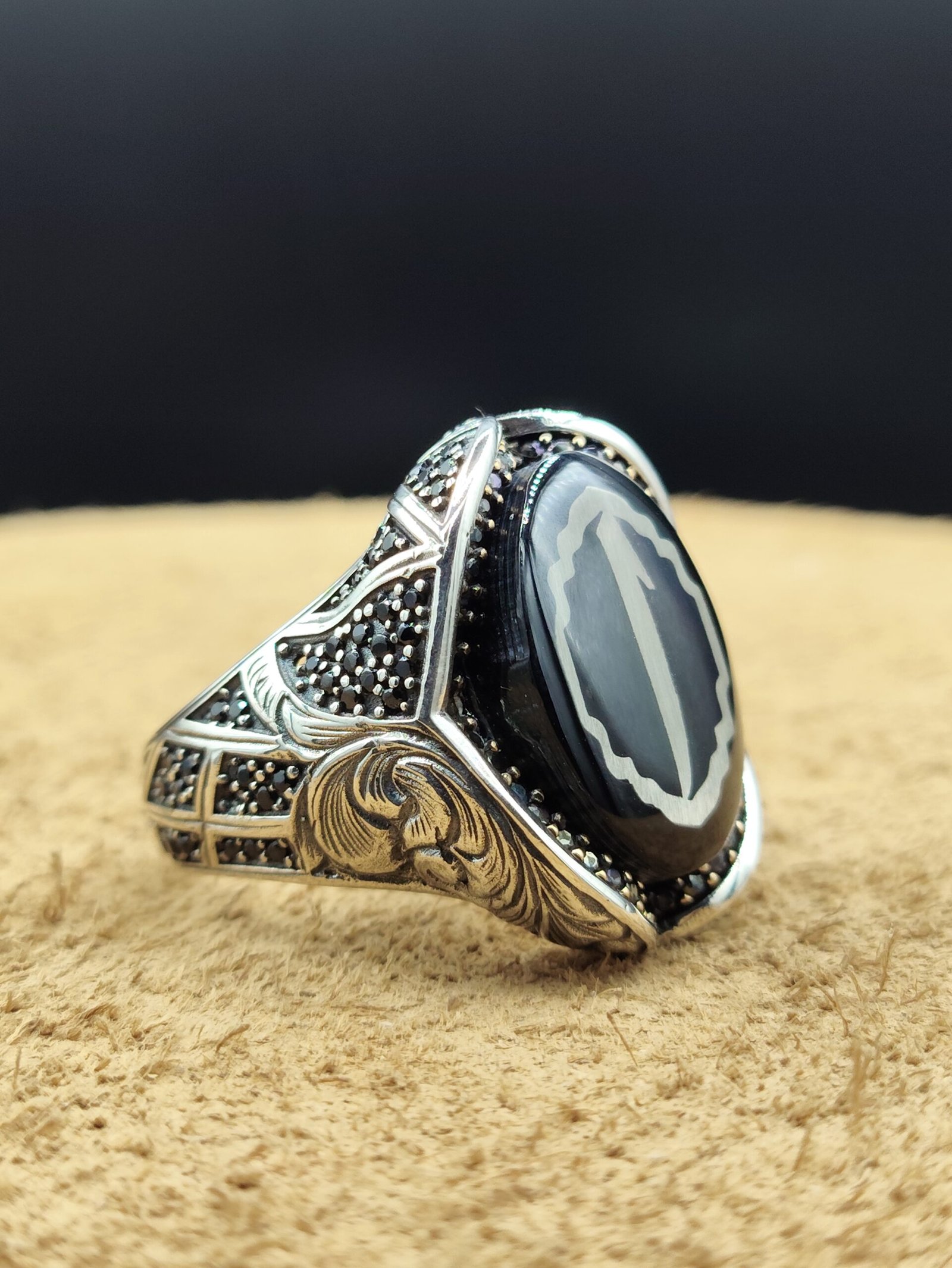 – Arapça Elif harfi tasarımıyla kişisel bir dokunuş ve anlam katarken, siyah zirkon taşlarla zenginleştirilmiş parlak yüzeyiyle dikkat çeker.