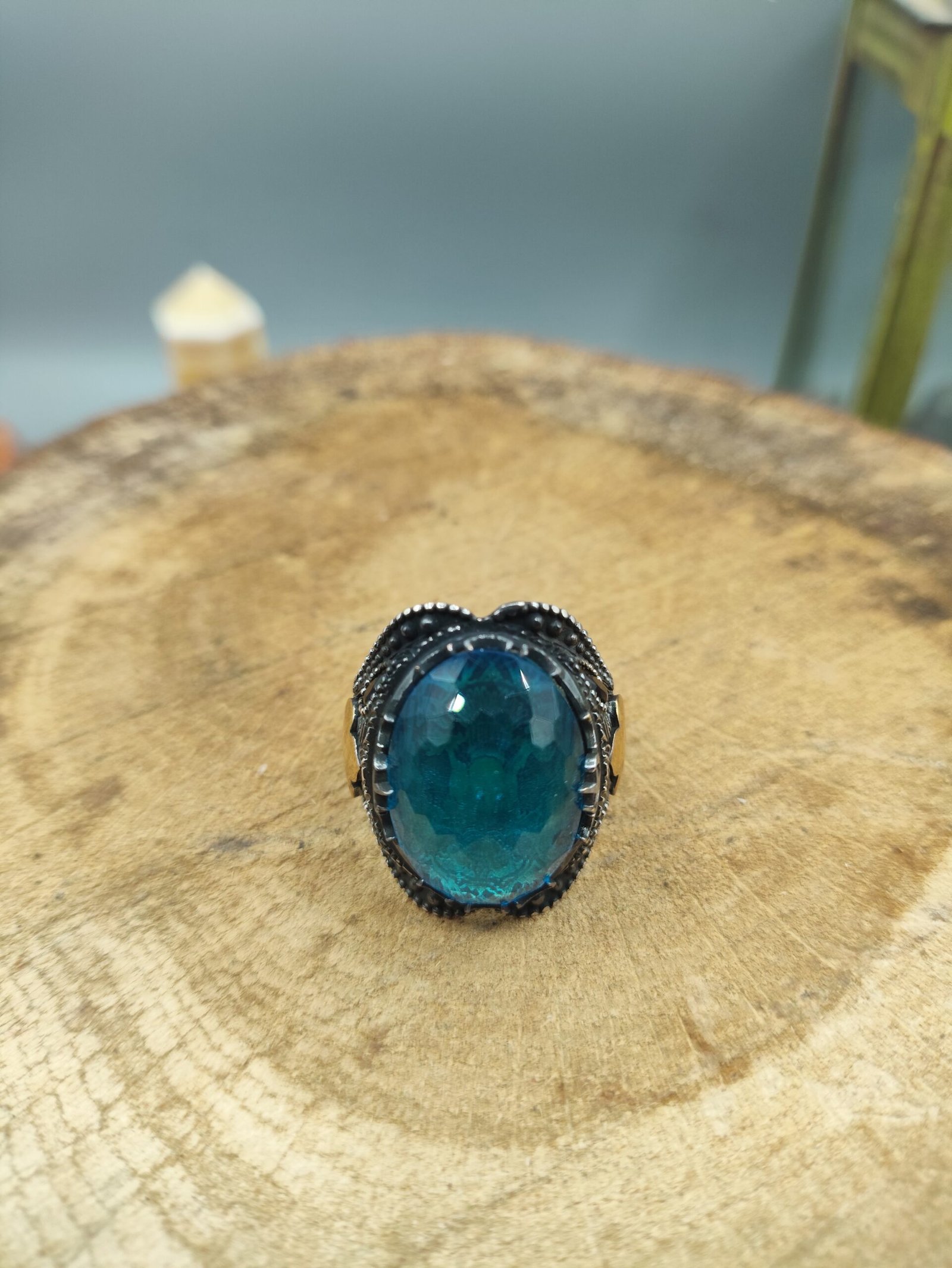 Aqua Marine Taşlı 925 Ayar Gümüş Yüzük 11.46 Gram