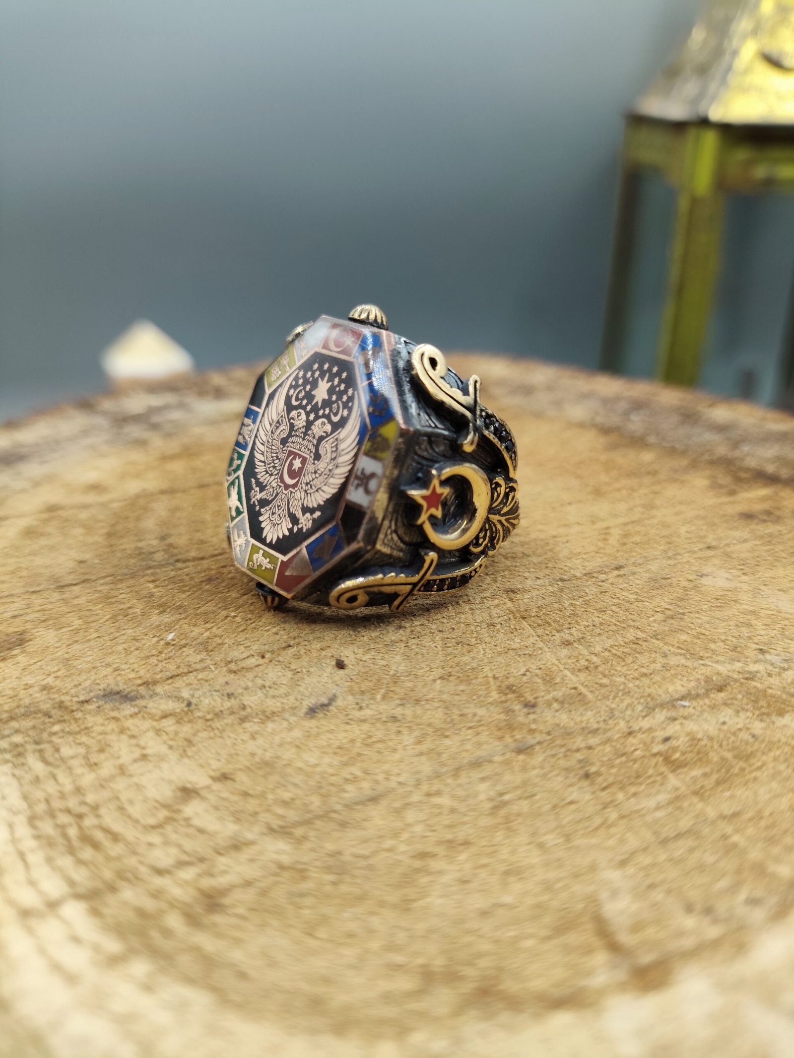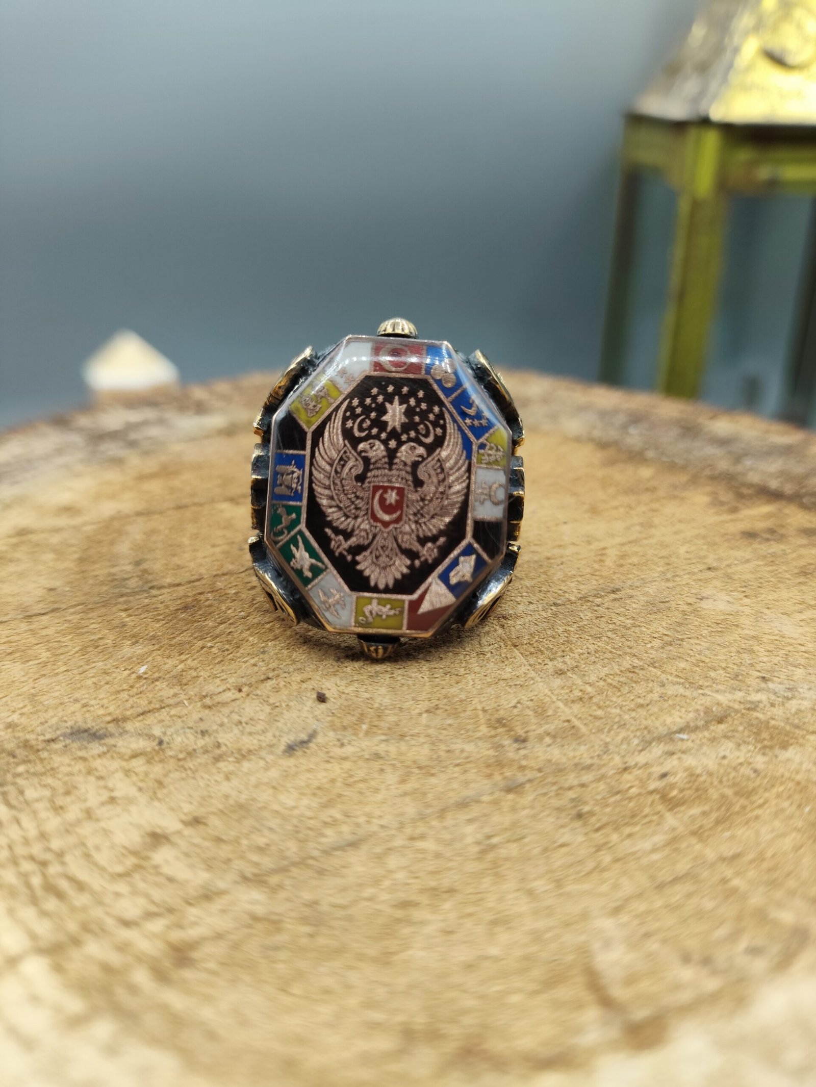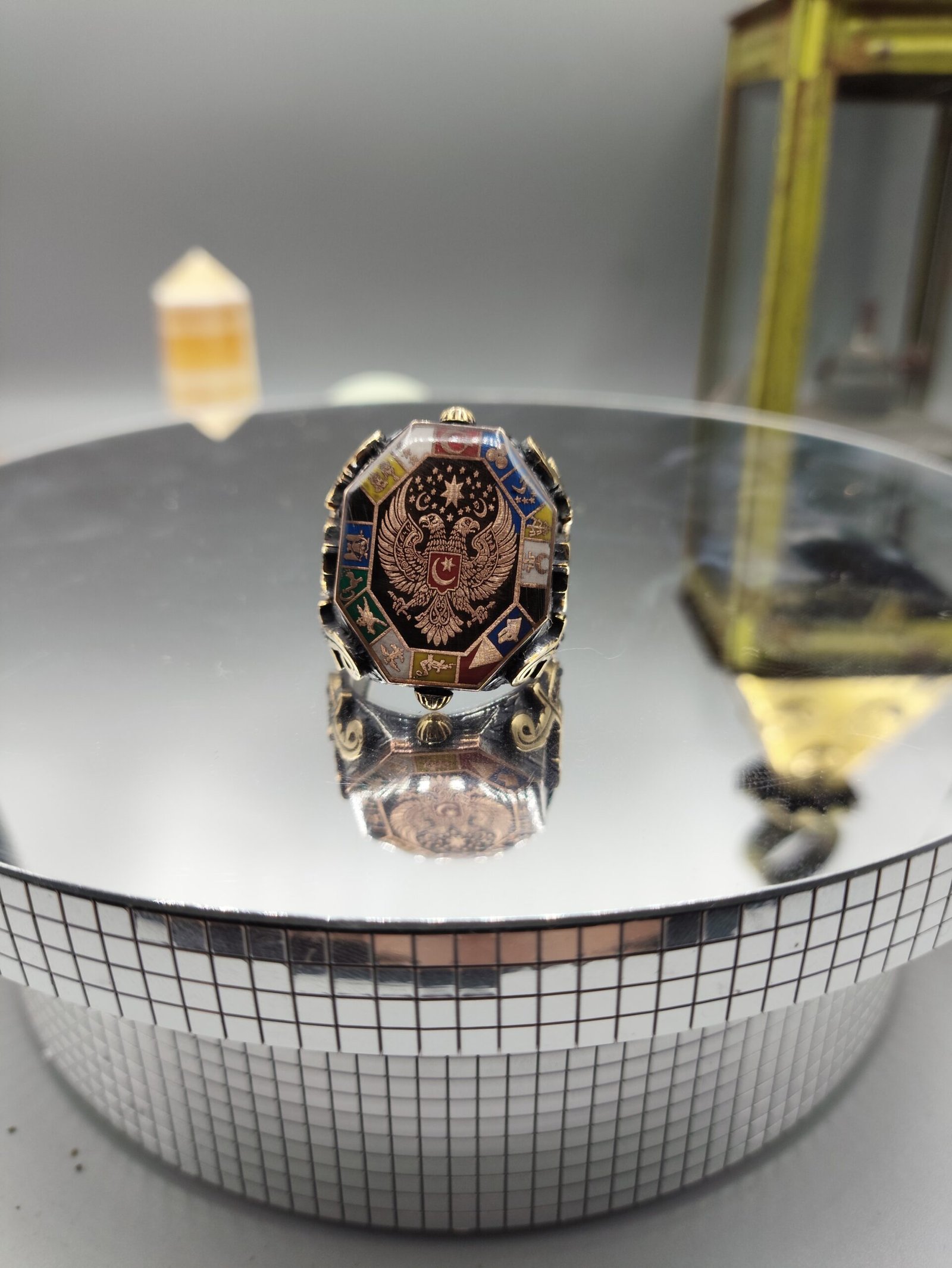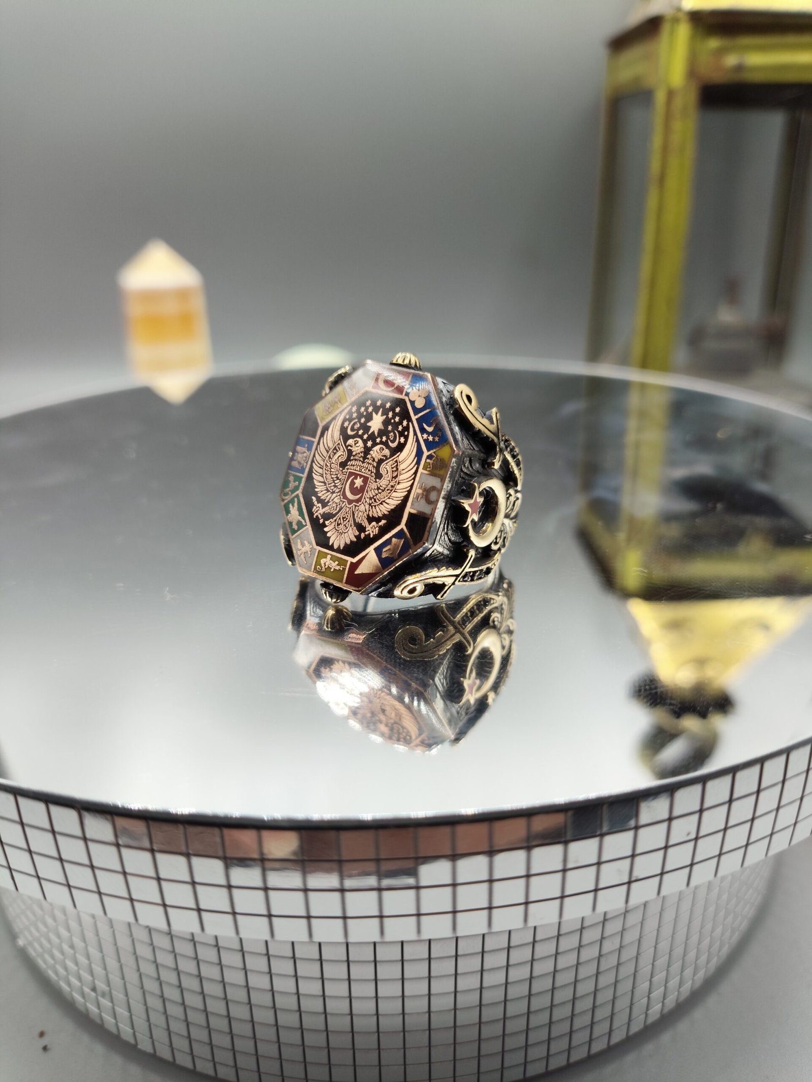 Çift Başlı Kartal 16 Türk Devleti 925 Ayar Gümüş Yüzük 18,19
