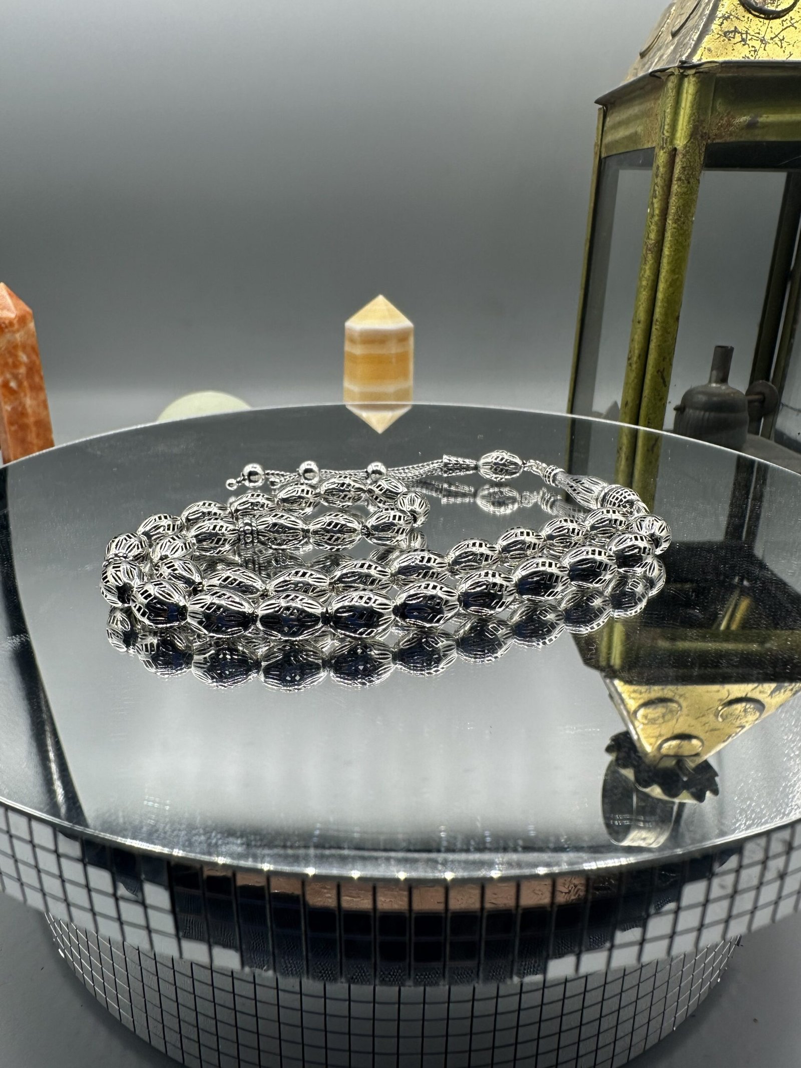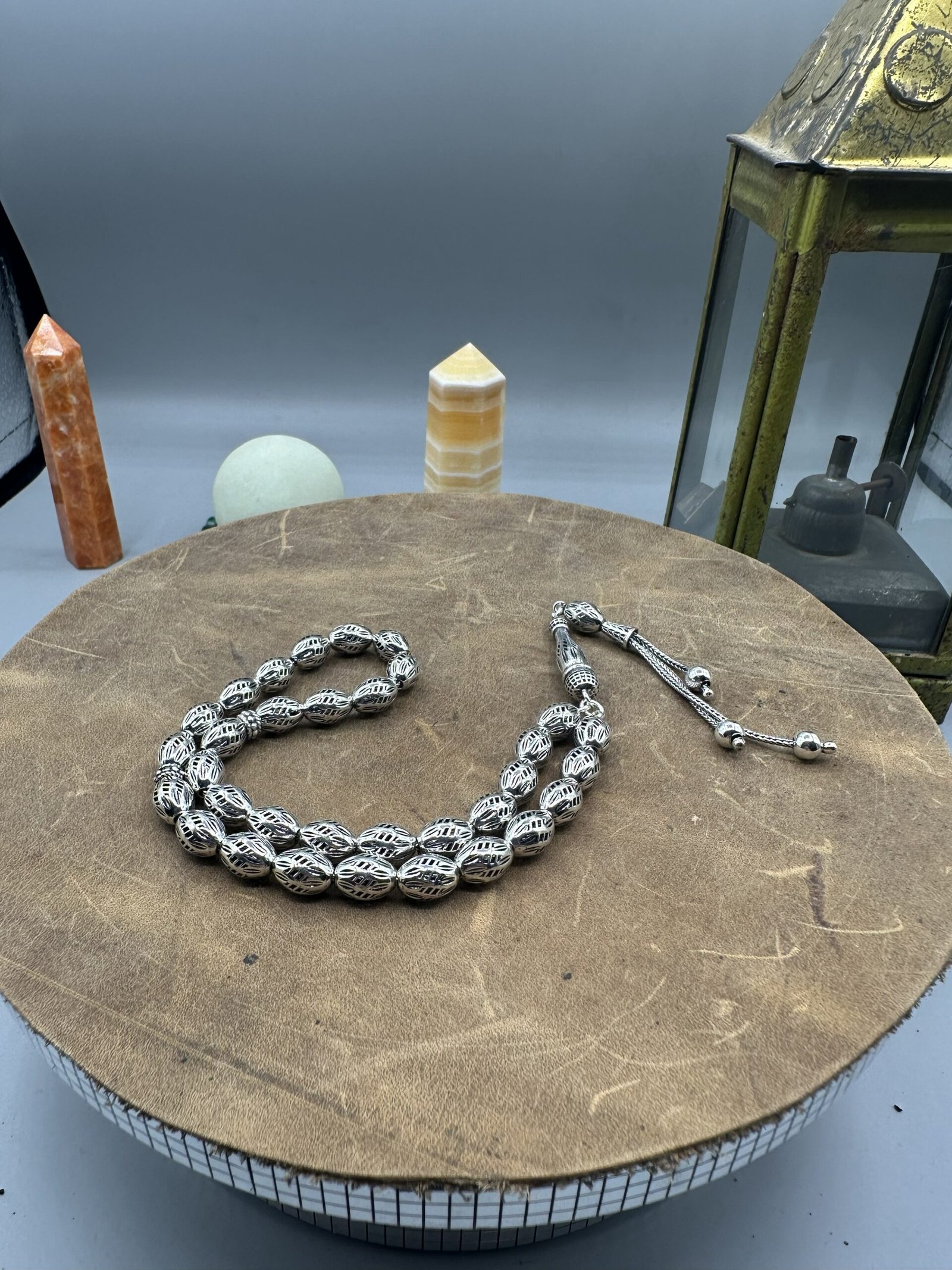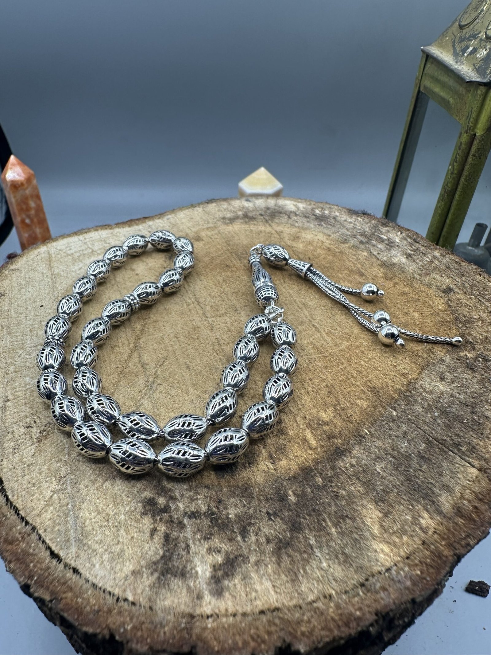 ✨ El işçiliği ile özenle tasarlanmış olan bu tesbih, her bir detayında kalite ve dikkat gösterir. Her bir boncuk, oksitli gümüşün zarif parlaklığını yansıtarak kullanıcısına göz alıcı bir deneyim sunar.