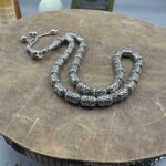 El Işçiliği Hafif Ve Şık Fizyon Arpa Kesim Oksitli Tesbih – 925 Ayar Gümüş – 33 gram 26 Cm