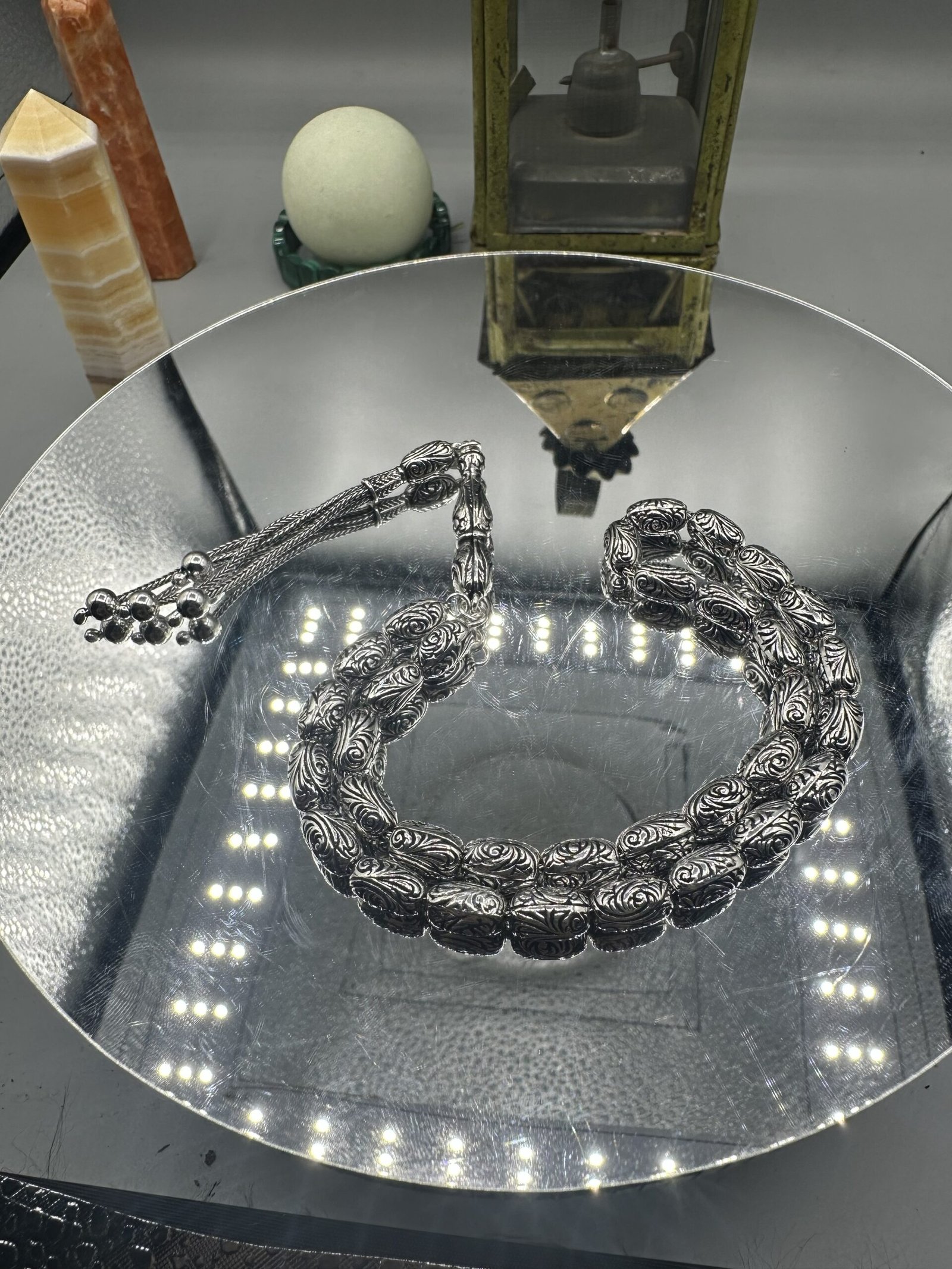 “El Işçiliği Hafif Ve Şık Fizyon Arpa Kesim Oksitli Tesbih – 925 Ayar Gümüş – 33 gram 26 Cm” için yorum yapan ilk kişi siz olun