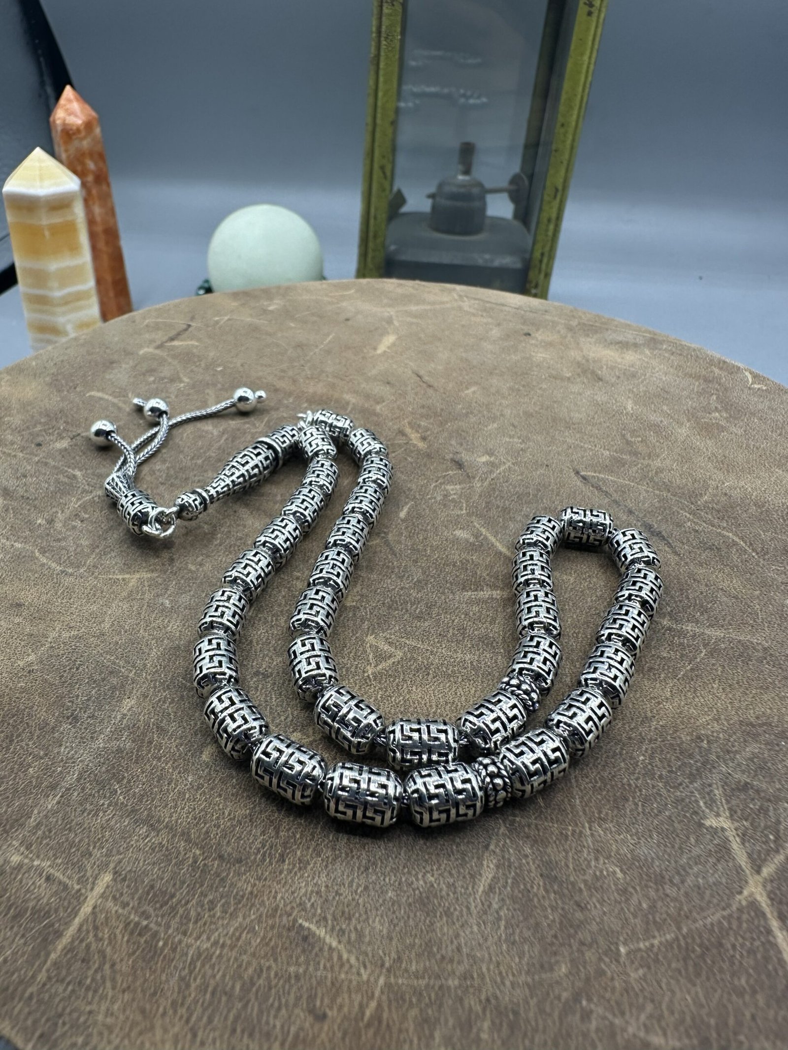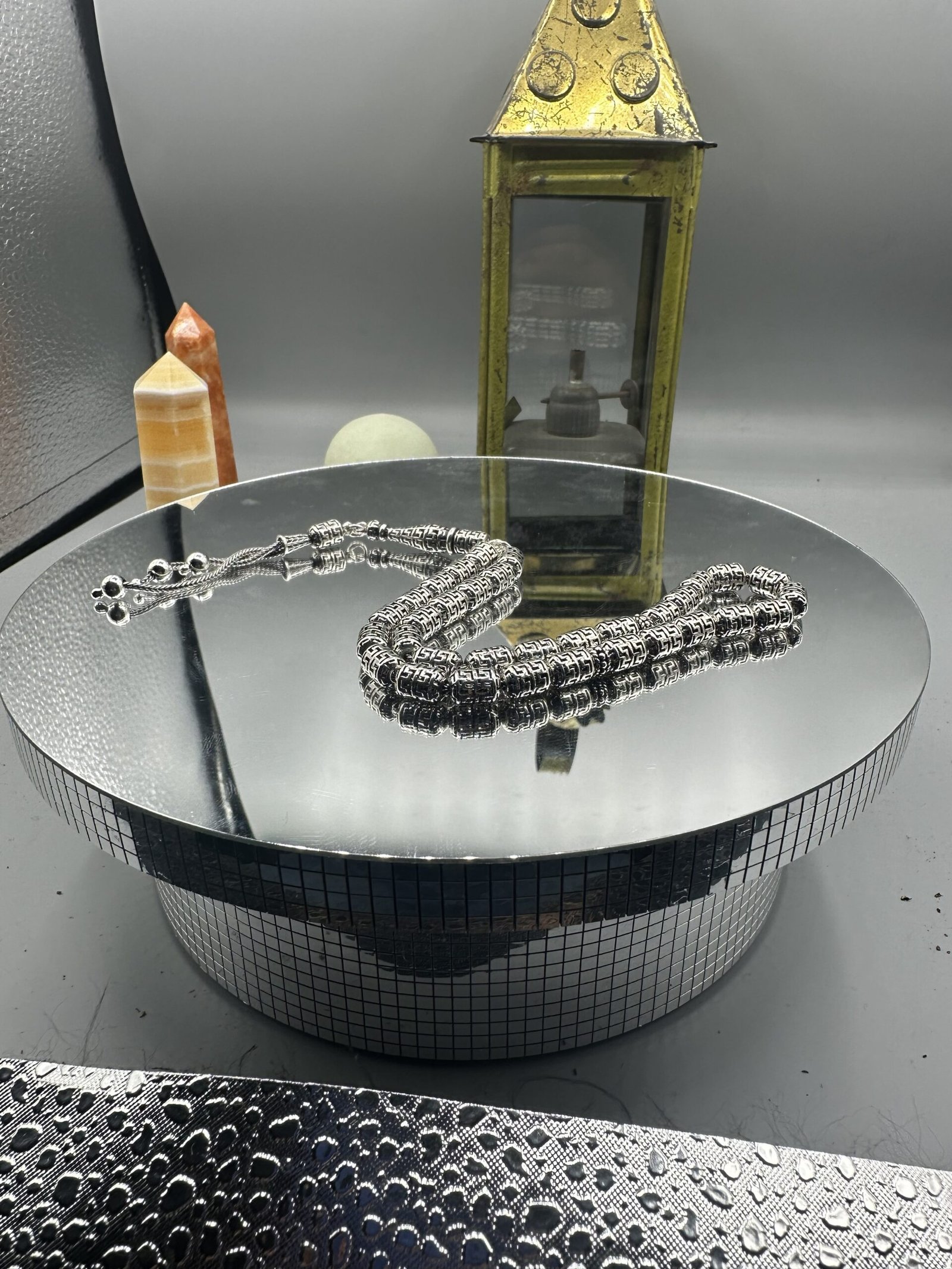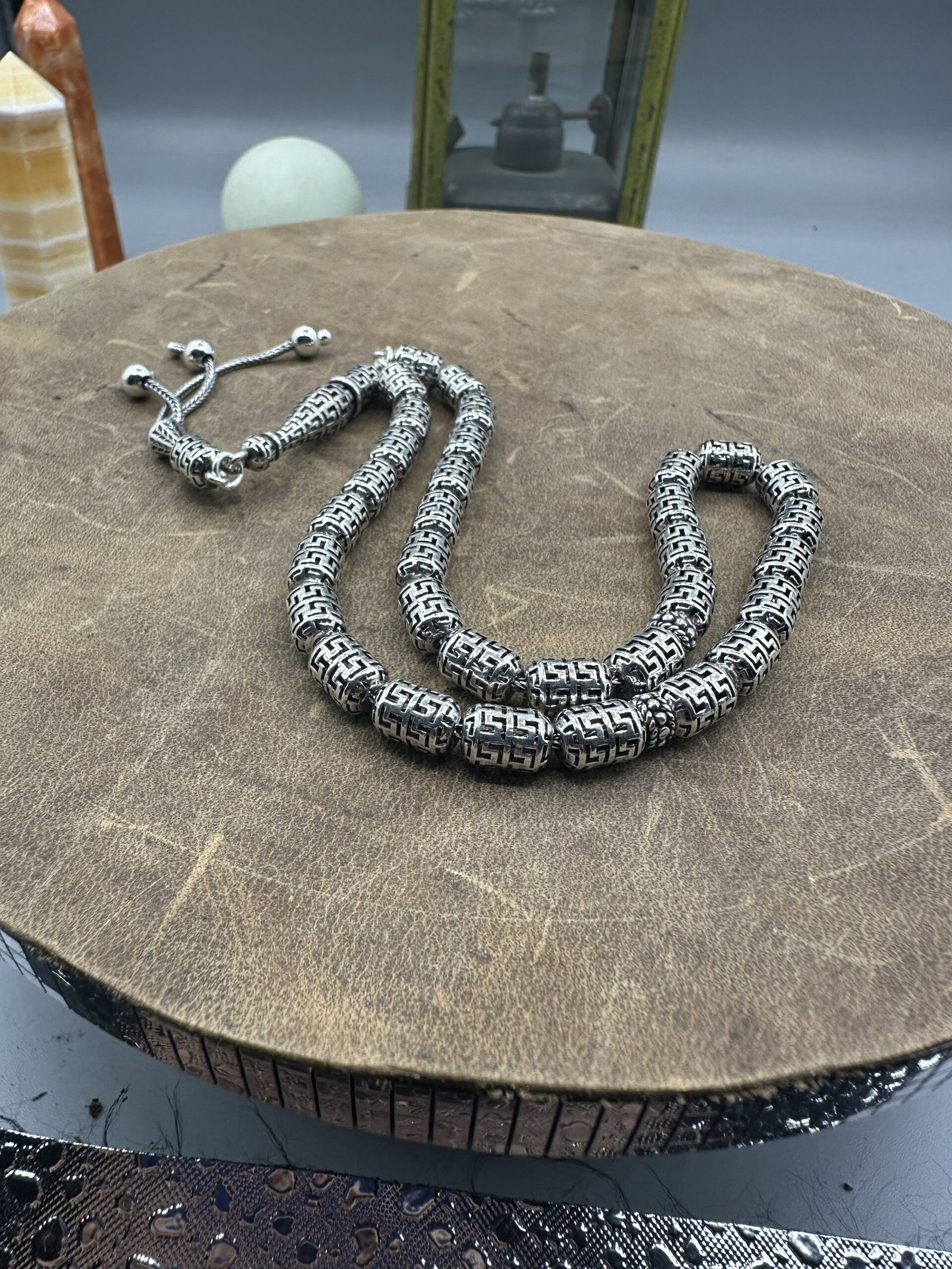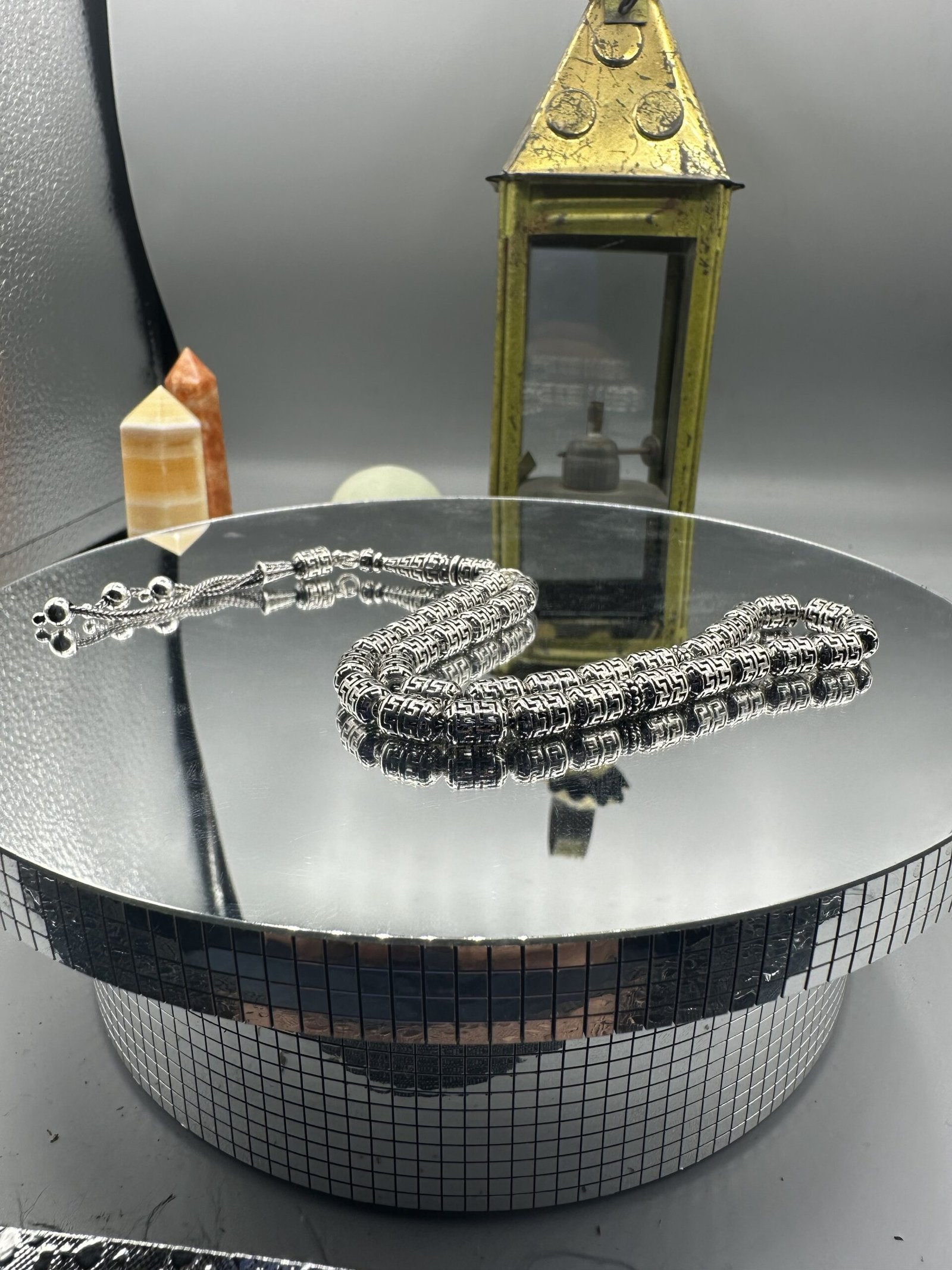 ✨ El işçiliği ile özenle tasarlanmış olan bu tesbih, her bir detayında kalite ve dikkat gösterir. Her bir boncuk, oksitli gümüşün zarif parlaklığını yansıtarak kullanıcısına göz alıcı bir deneyim sunar.