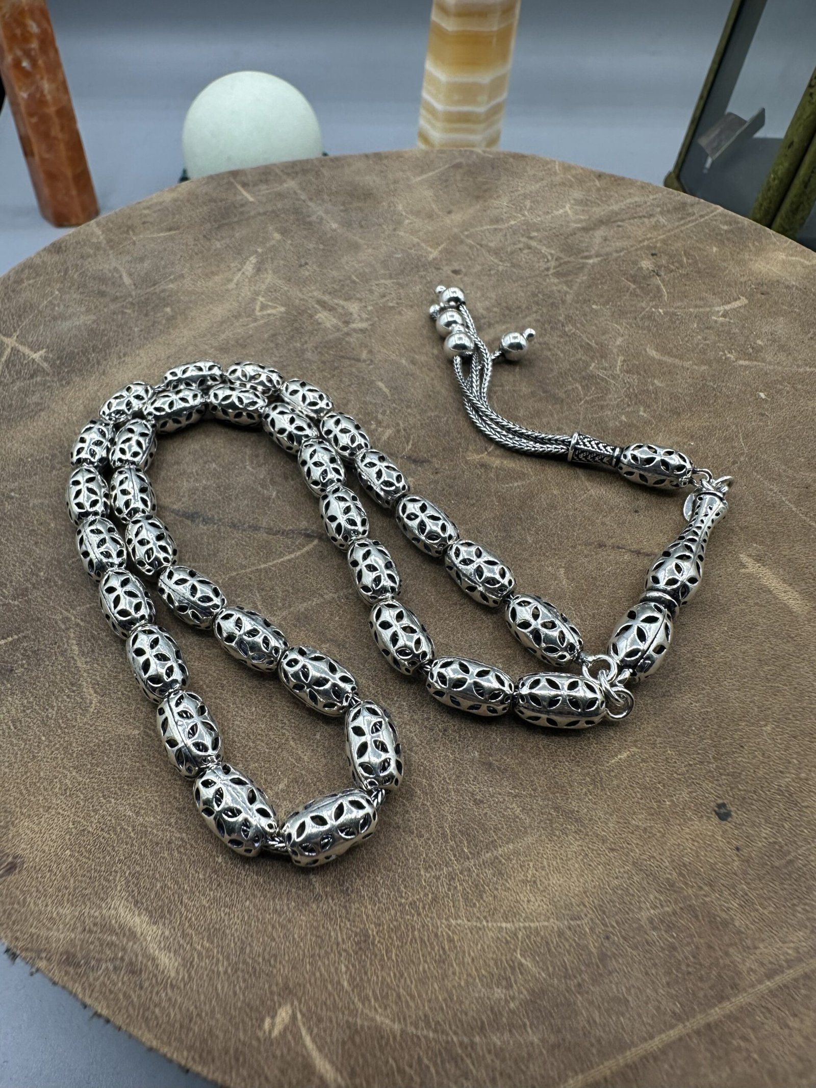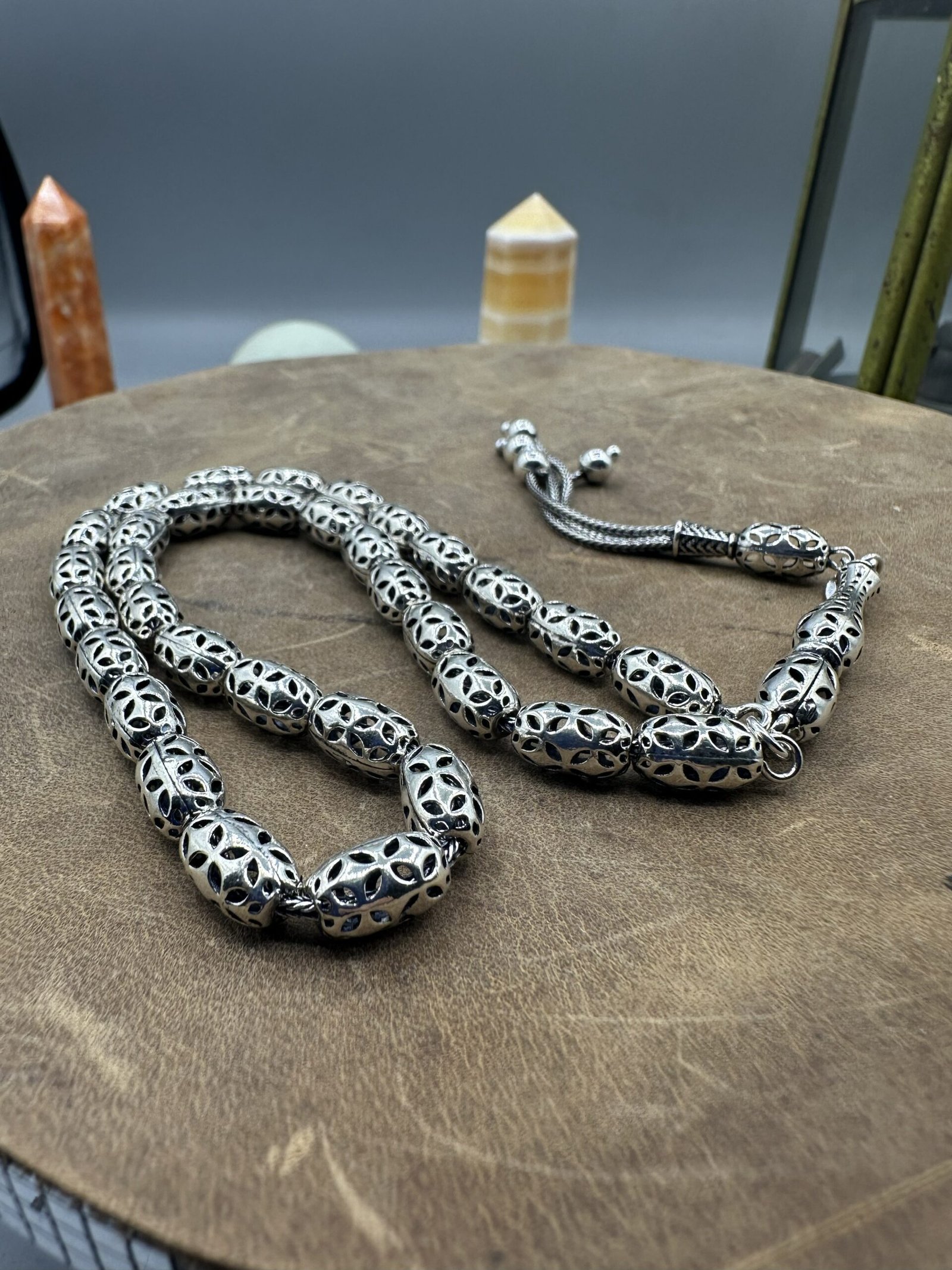✨ El işçiliği ile özenle tasarlanmış olan bu tesbih, her bir detayında kalite ve dikkat gösterir. Her bir boncuk, oksitli gümüşün zarif parlaklığını yansıtarak kullanıcısına göz alıcı bir deneyim sunar.