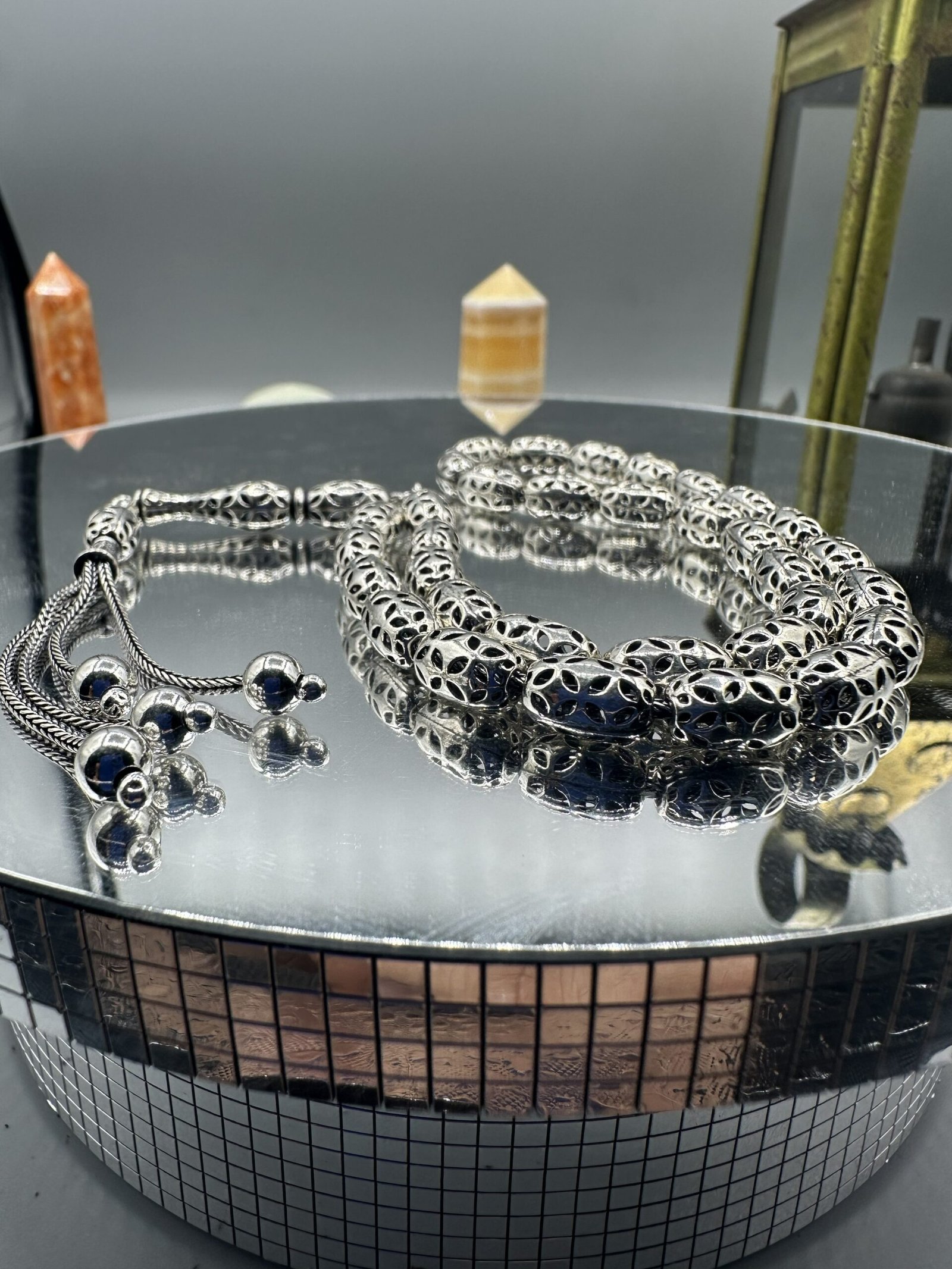 ✨ Oksitli gümüş, tesbihin sağlamlığını ve dayanıklılığını artırırken, aynı zamanda asalet ve zarafeti simgeler. Bu tesbih, kullanıcısına benzersiz bir tarz kazandırır.