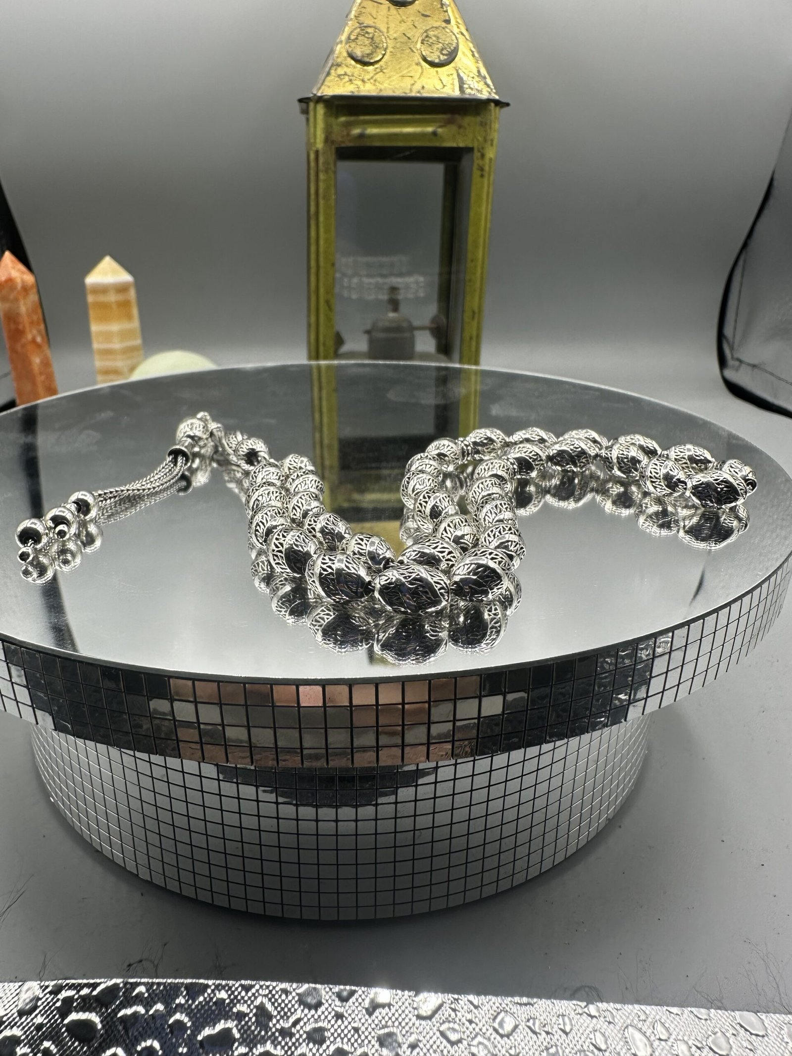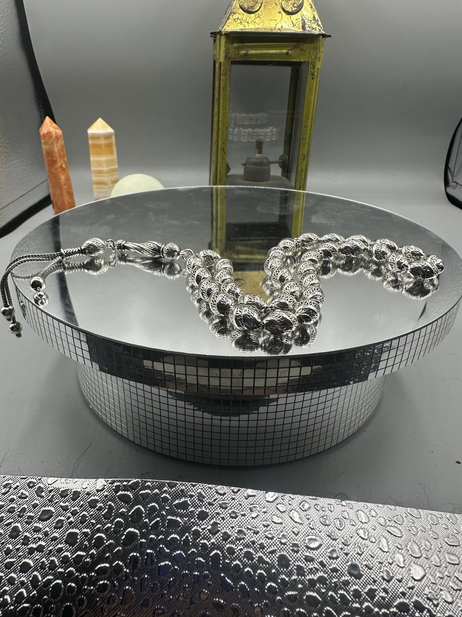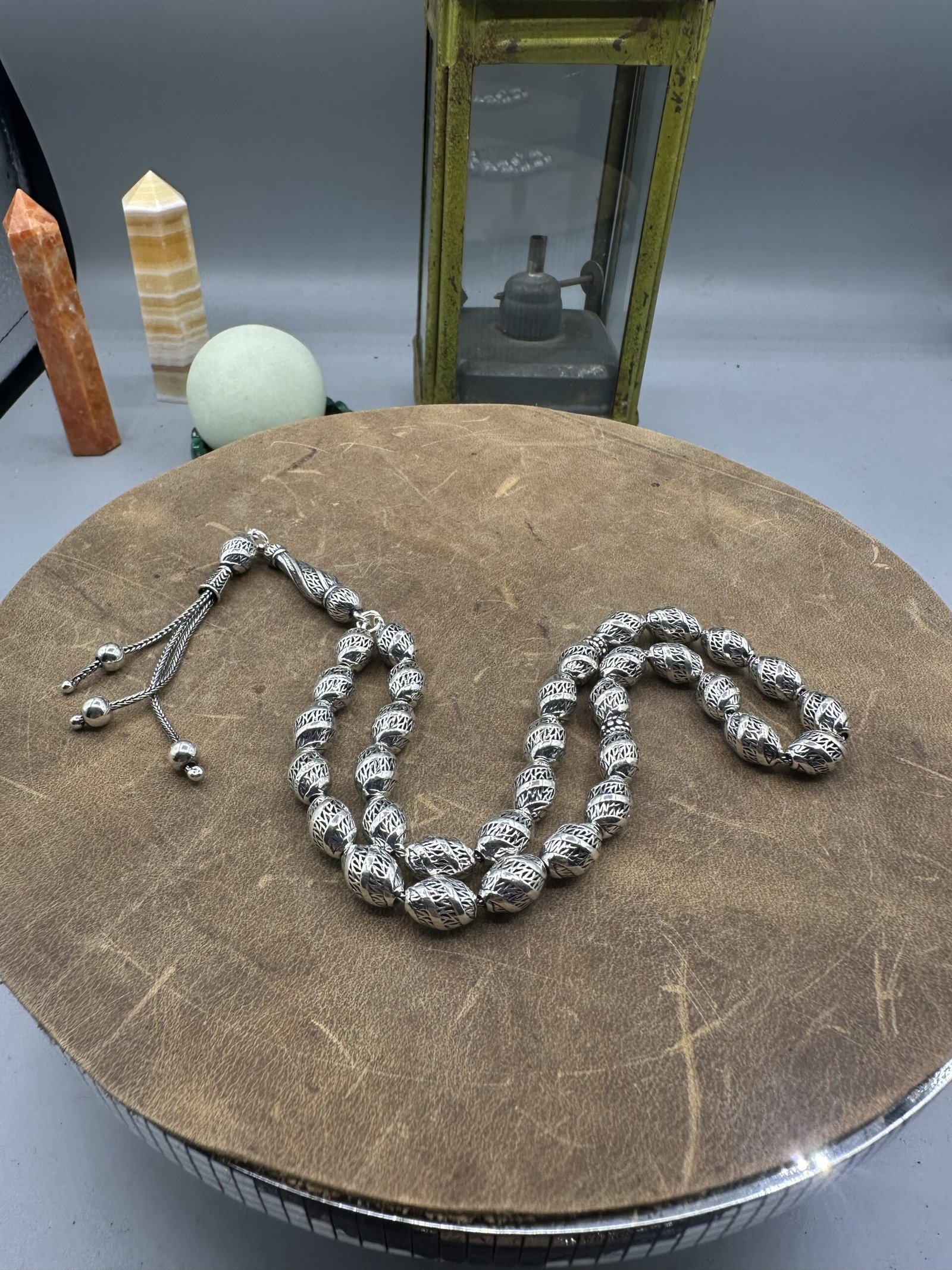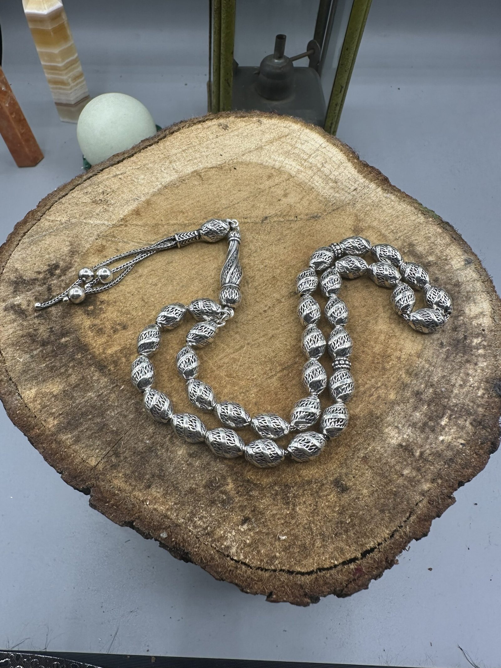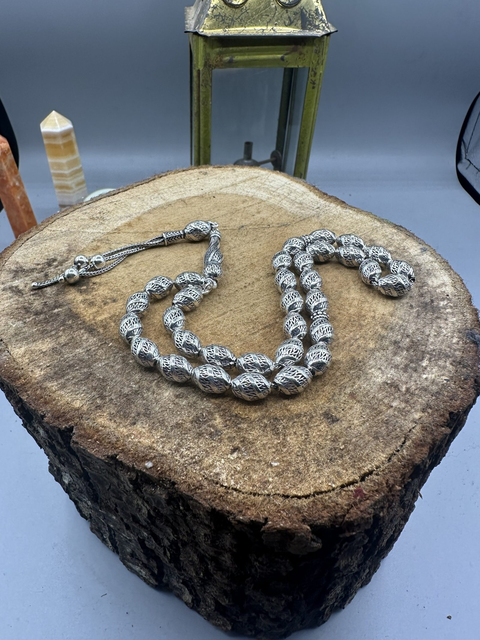 ✨ El işçiliği ile özenle tasarlanmış olan bu tesbih, her bir detayında kalite ve dikkat gösterir. Her bir boncuk, oksitli gümüşün zarif parlaklığını yansıtarak kullanıcısına göz alıcı bir deneyim sunar.