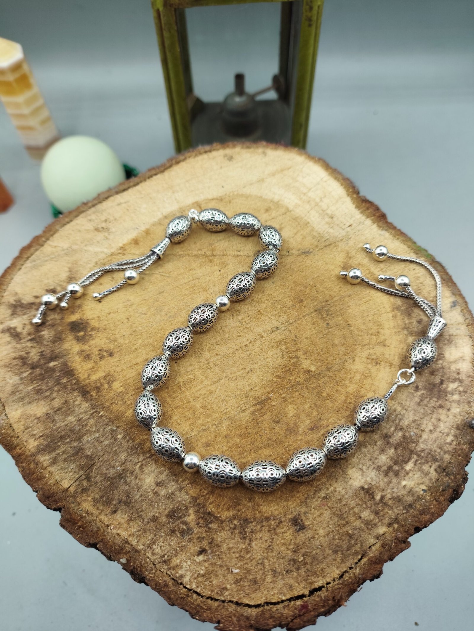 ✨ El işçiliği ile özenle tasarlanmış olan bu tesbih, her bir detayında kalite ve dikkat gösterir. Her bir boncuk, oksitli gümüşün zarif parlaklığını yansıtarak kullanıcısına göz alıcı bir deneyim sunar.