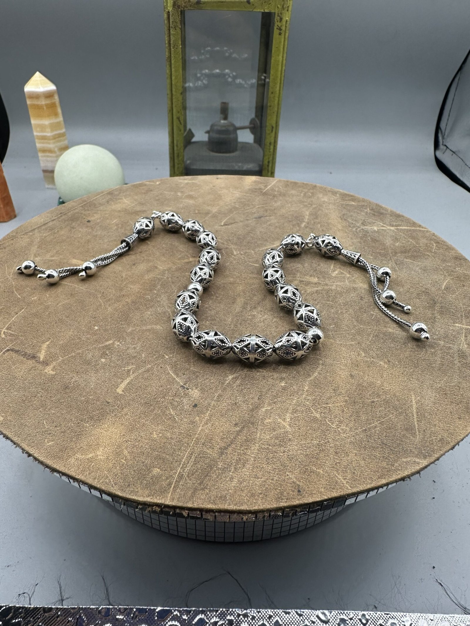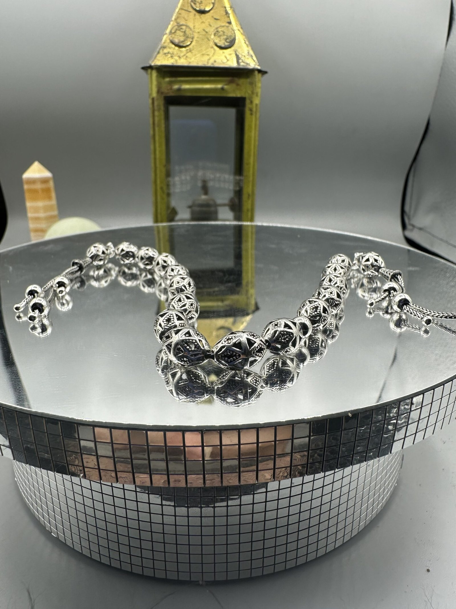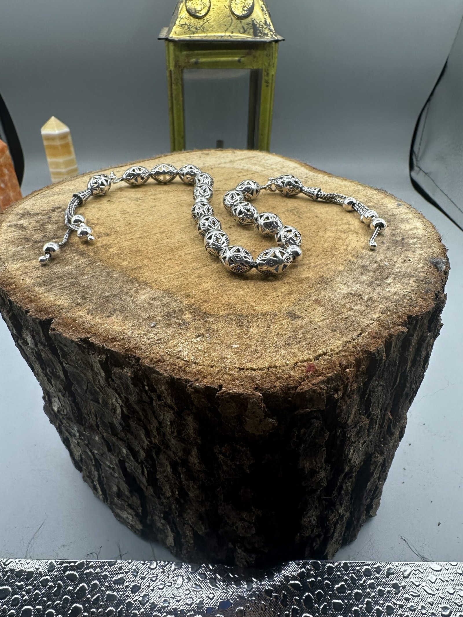 ✨ El işçiliği ile özenle tasarlanmış olan bu tesbih, her bir detayında kalite ve dikkat gösterir. Her bir boncuk, oksitli gümüşün zarif parlaklığını yansıtarak kullanıcısına göz alıcı bir deneyim sunar.