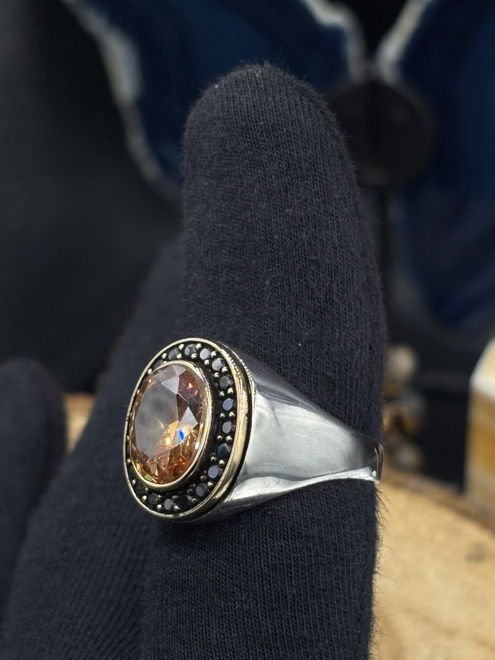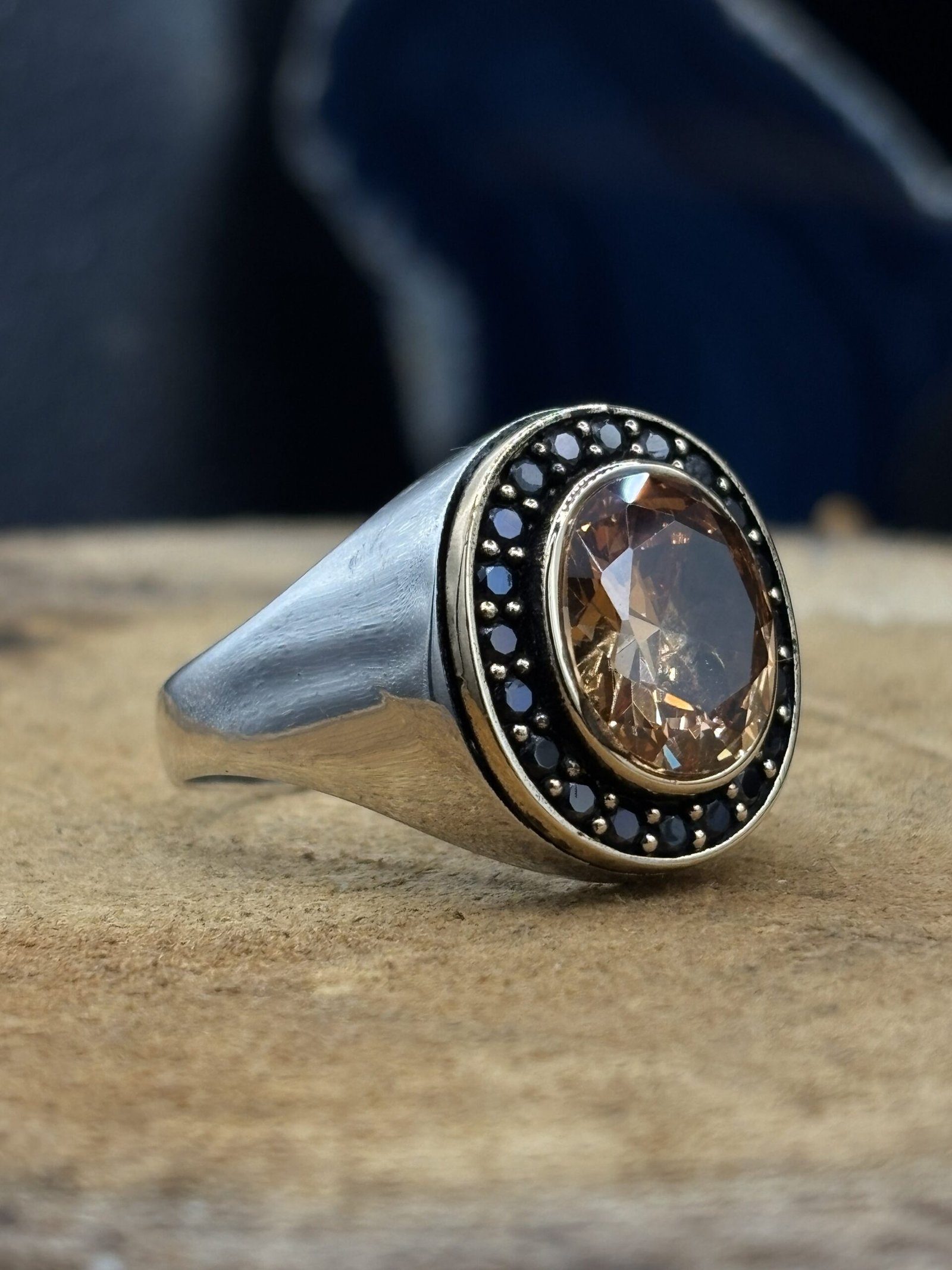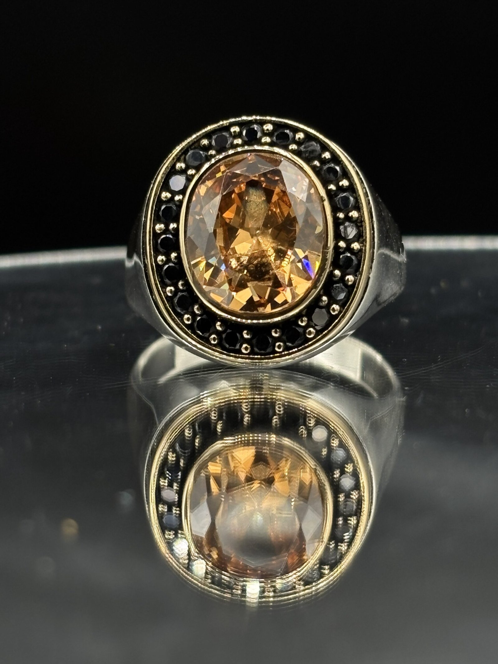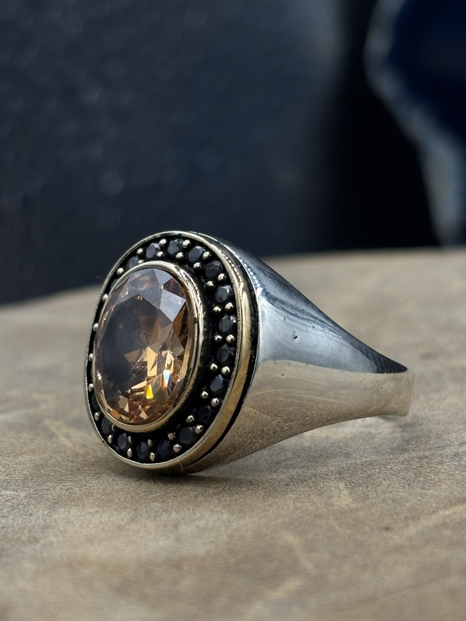 El işçiliği sitrin taşlı erkek gümüş yüzük, hem klasik hem de modern kombinlere kolayca uyum sağlar.