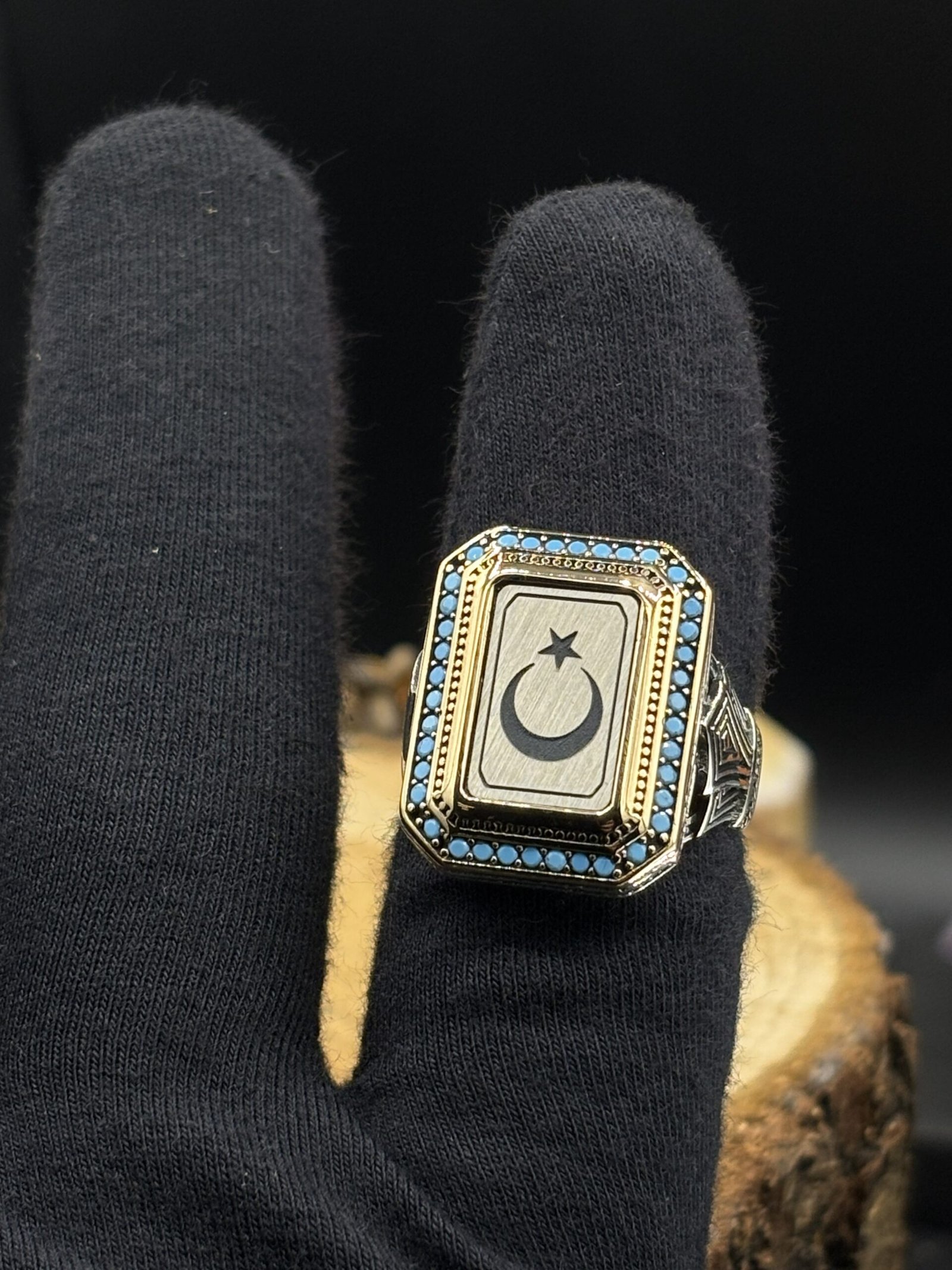 Türk bayrağı modeline sahip 925 ayar gümüş erkek yüzük, milli duruşu ve anlamlı tasarımıyla öne çıkan özel bir aksesuardır. Ay yıldız motifiyle hazırlanan bu yüzük, Türk kültürünü ve güçlü bir kimliği stiline yansıtmak isteyenler için tasarlanmıştır.