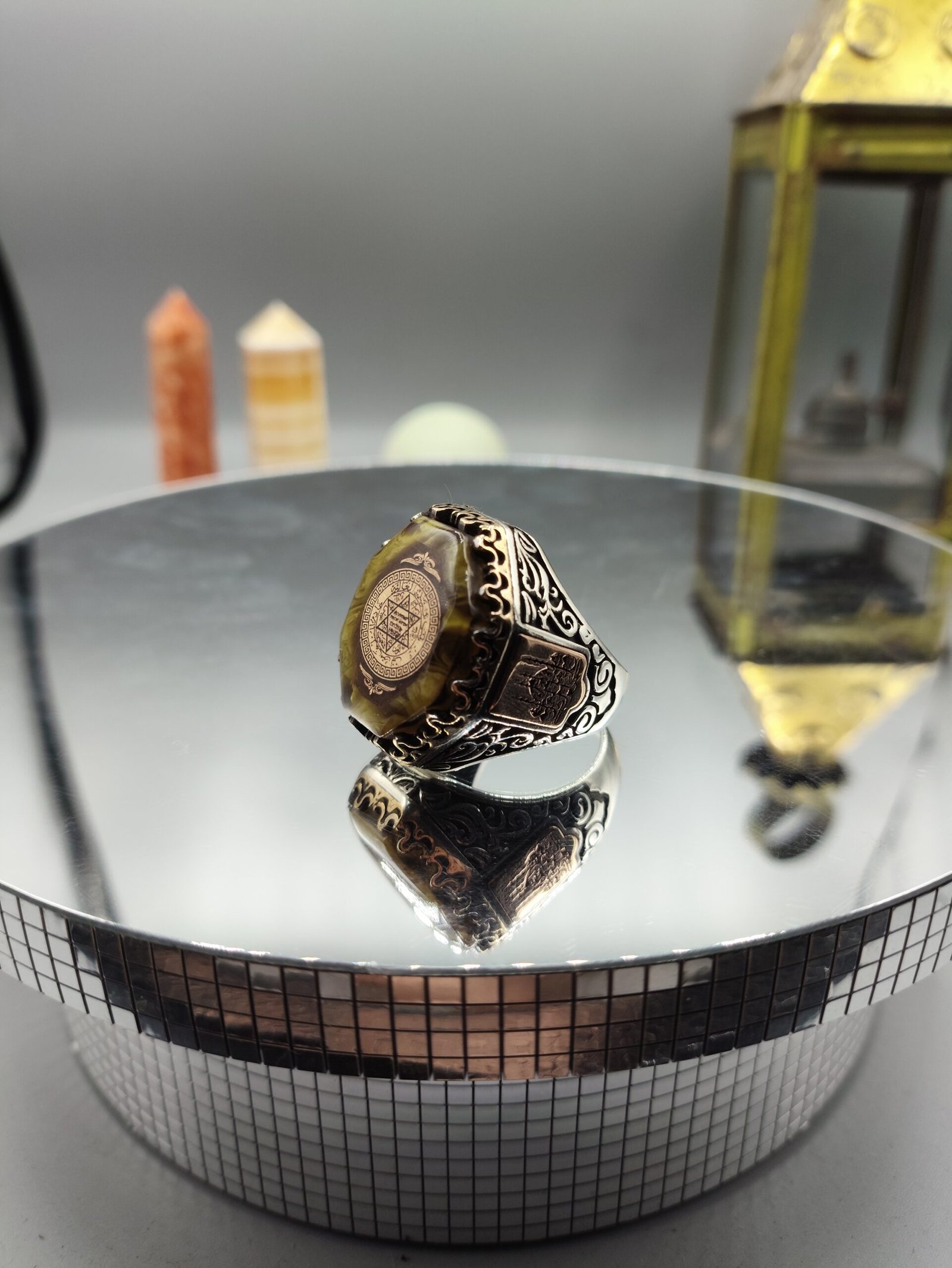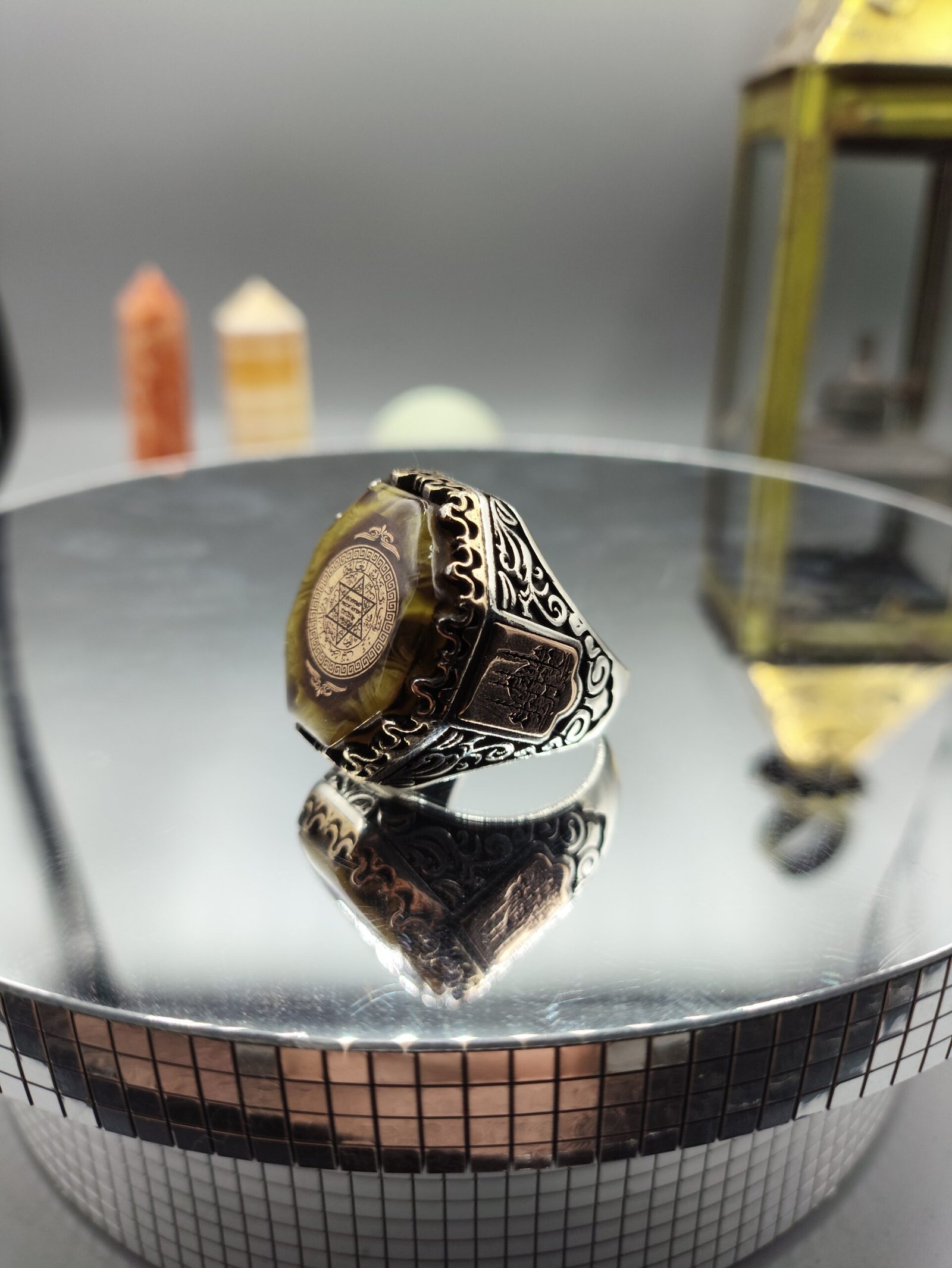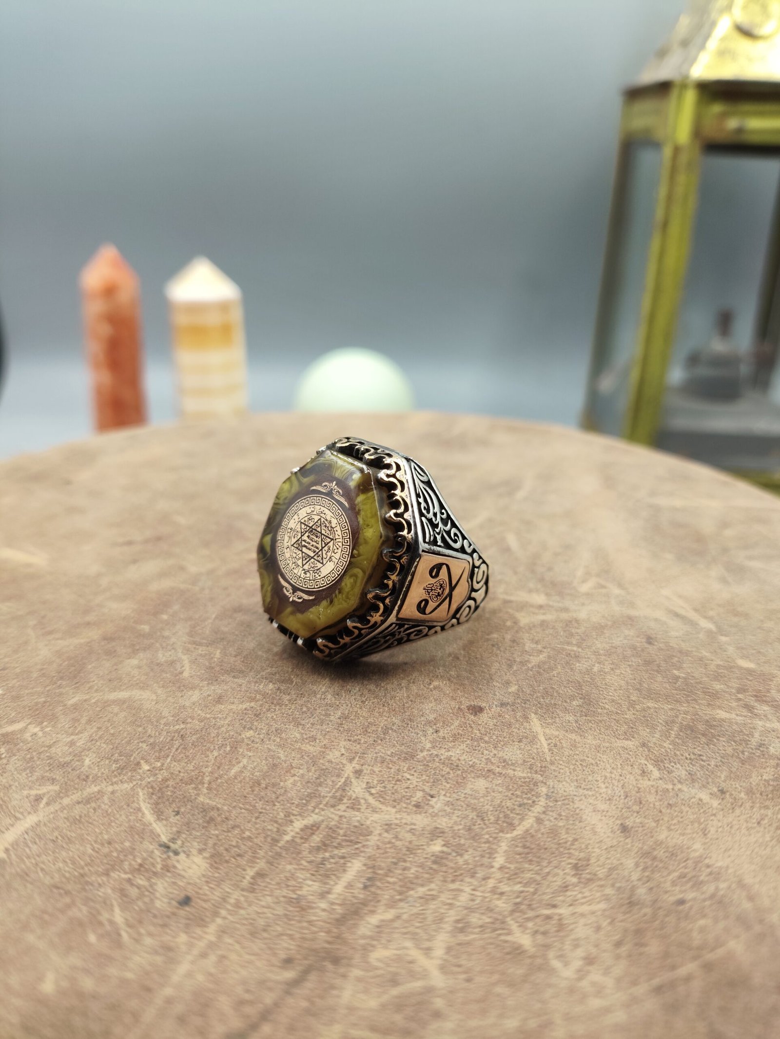 Kasım 28, 2025Kehribar Taşlı Köşeli Hz. Süleyman Mührü Motifli 925 Ayar Gümüş Yüzük 25.3 gram