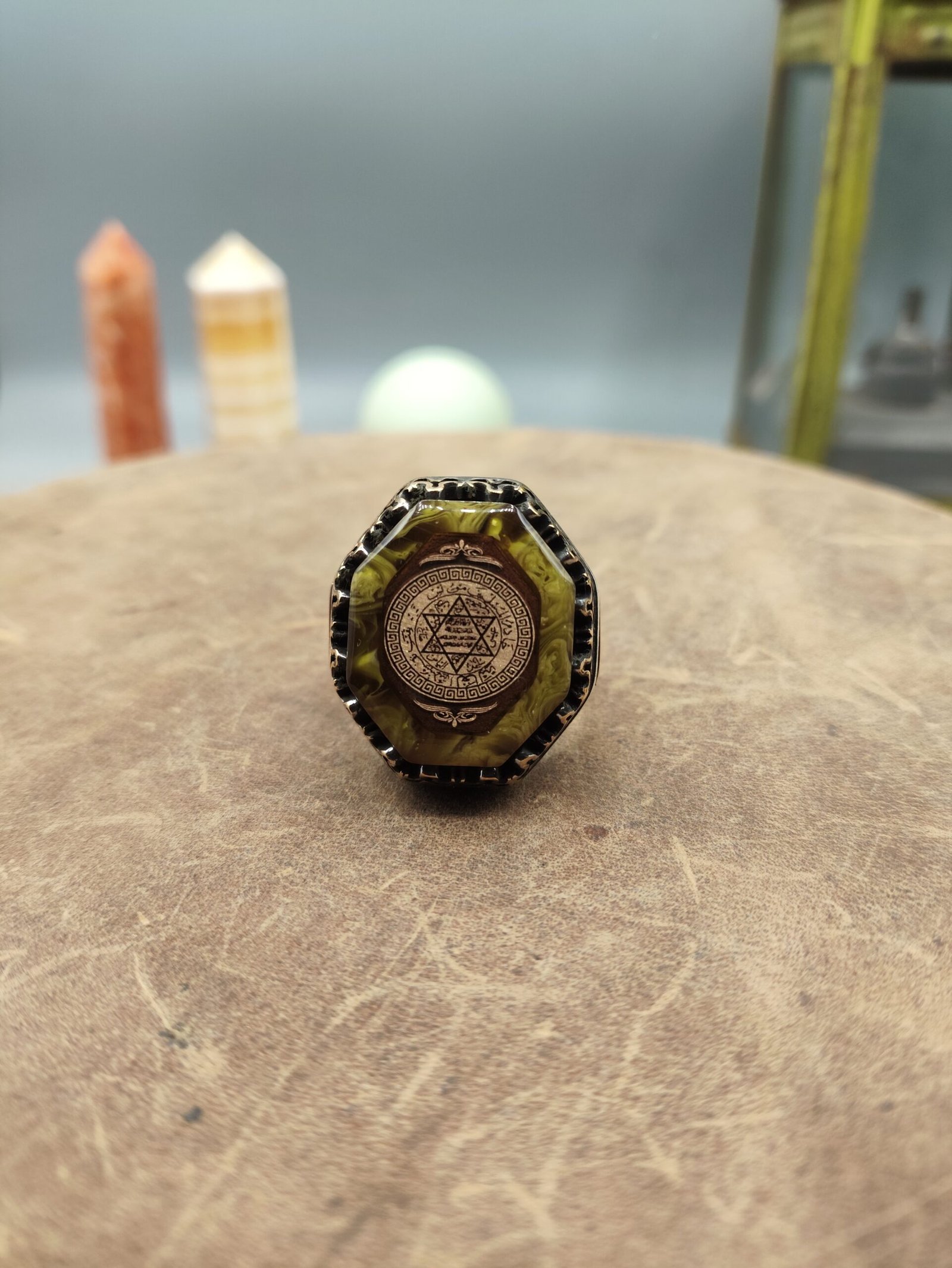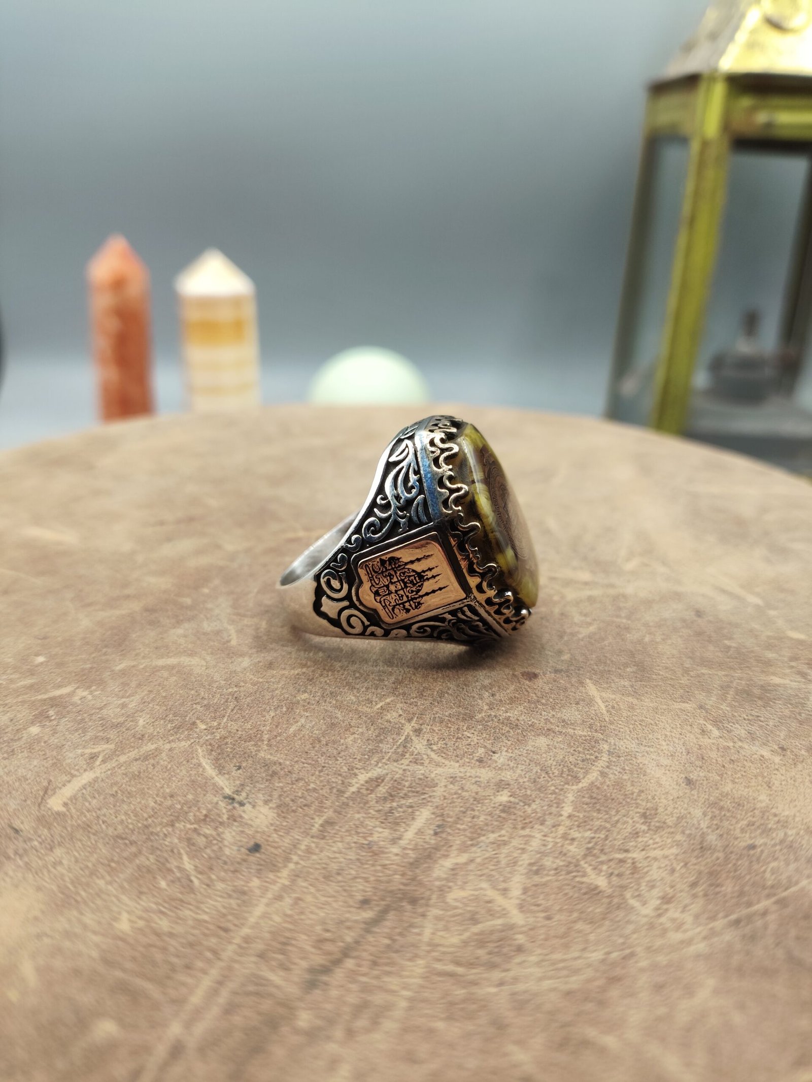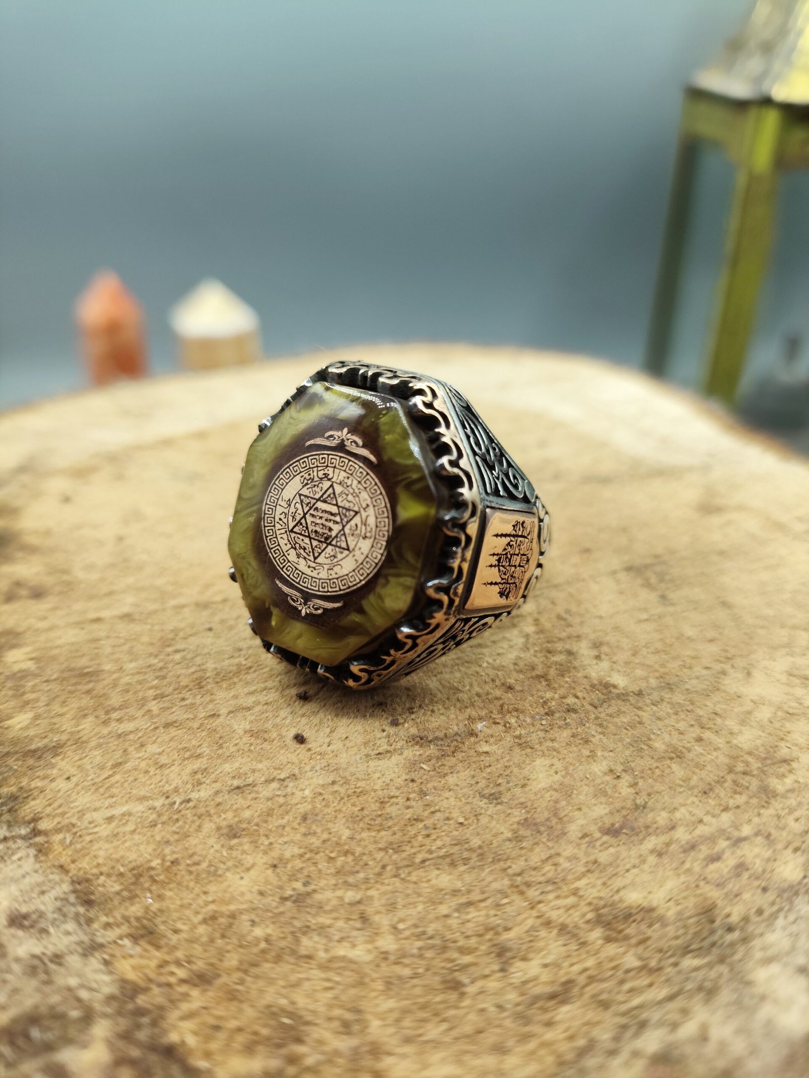 Kasım 28, 2025Kehribar Taşlı Köşeli Hz. Süleyman Mührü Motifli 925 Ayar Gümüş Yüzük 25.3 gram