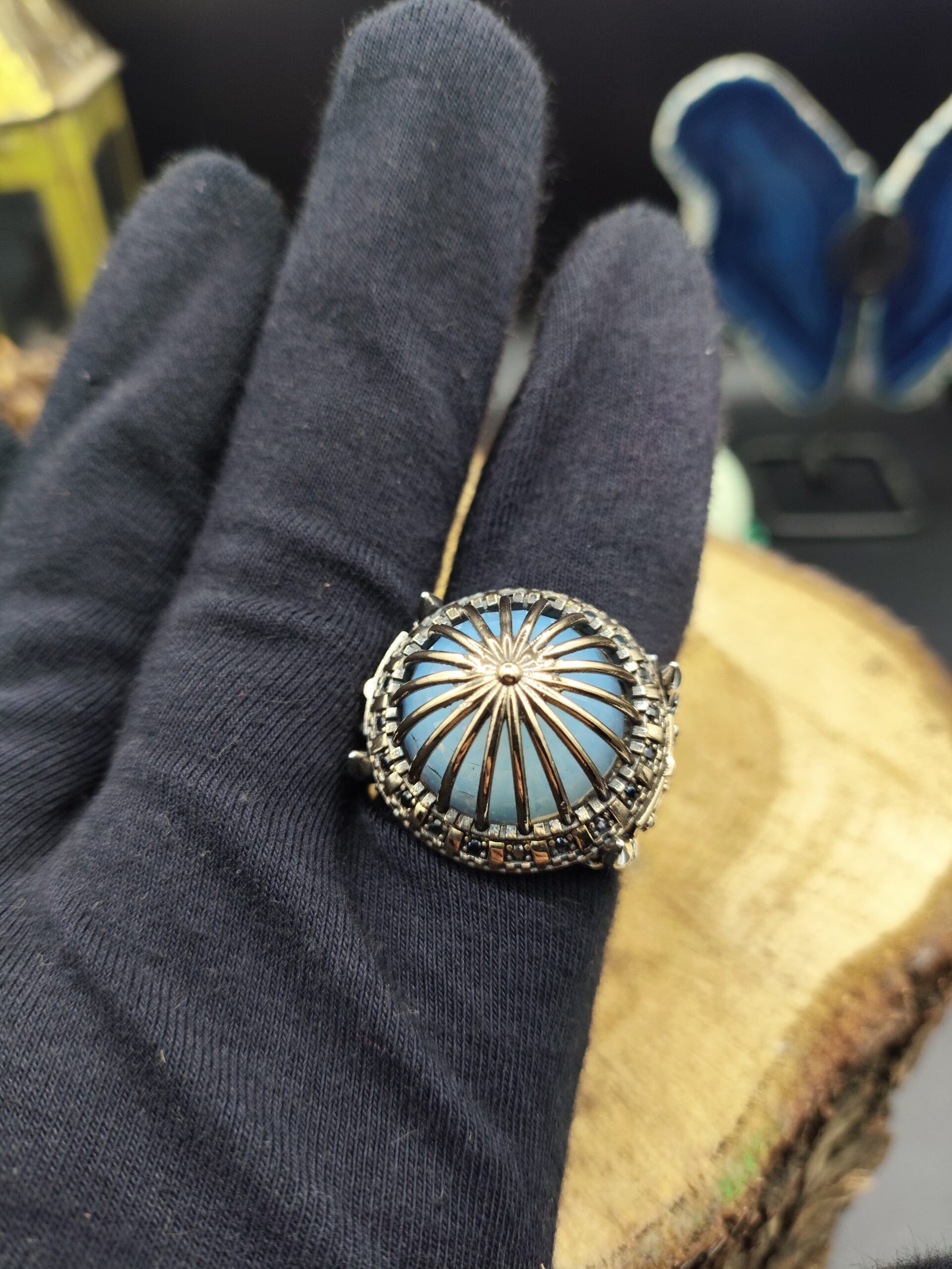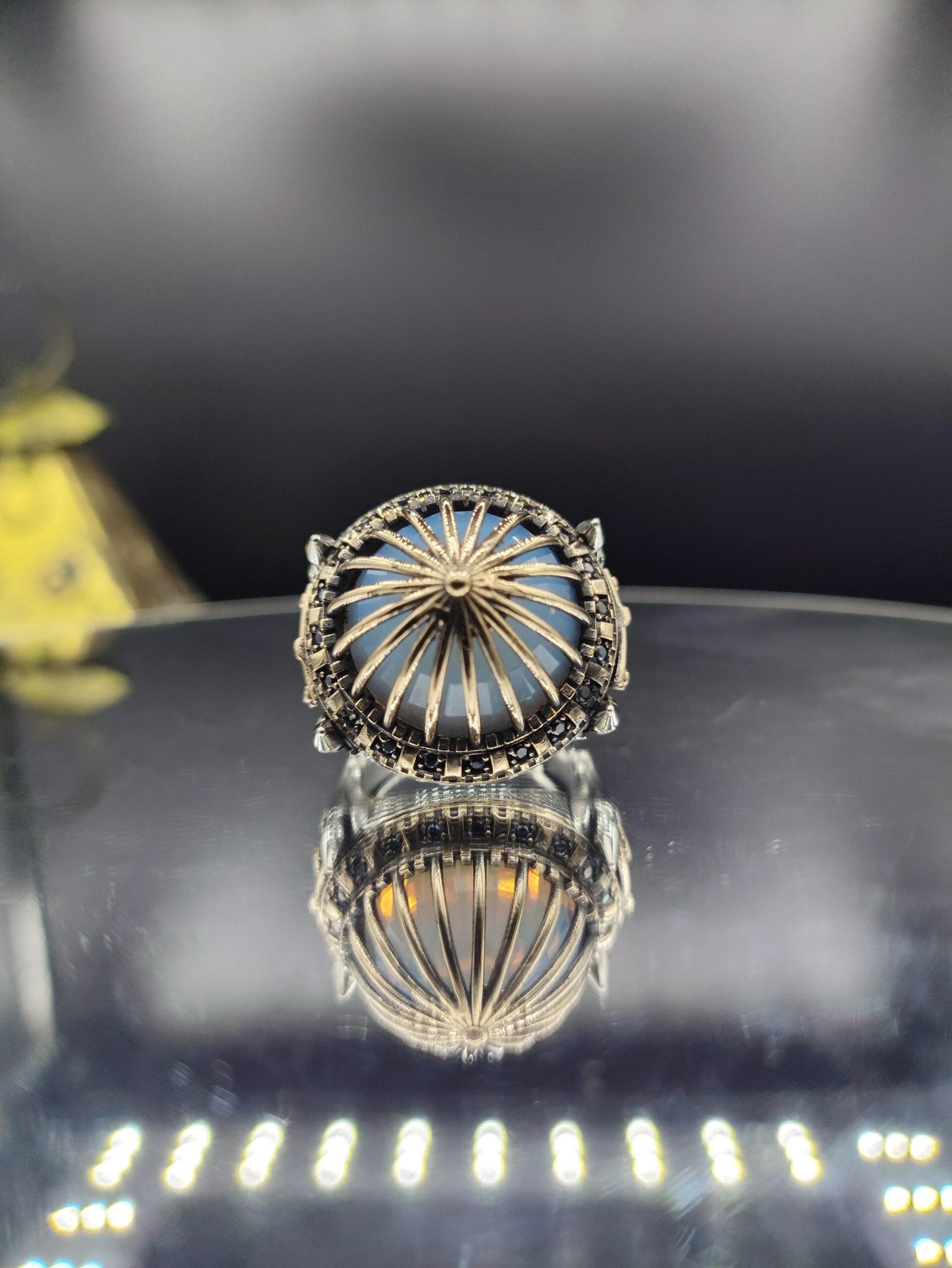Tamamı 925 ayar gümüşten üretilen bu özel tasarım erkek yüzük, usta zanaatkârlar tarafından titizlikle işlenmiştir. Yaklaşık 22 gram ağırlığı sayesinde hem sağlam hem de konforlu bir kullanım sunar. Günlük kullanımda veya özel günlerde stilinizi tamamlayacak dikkat çekici bir aksesuardır.