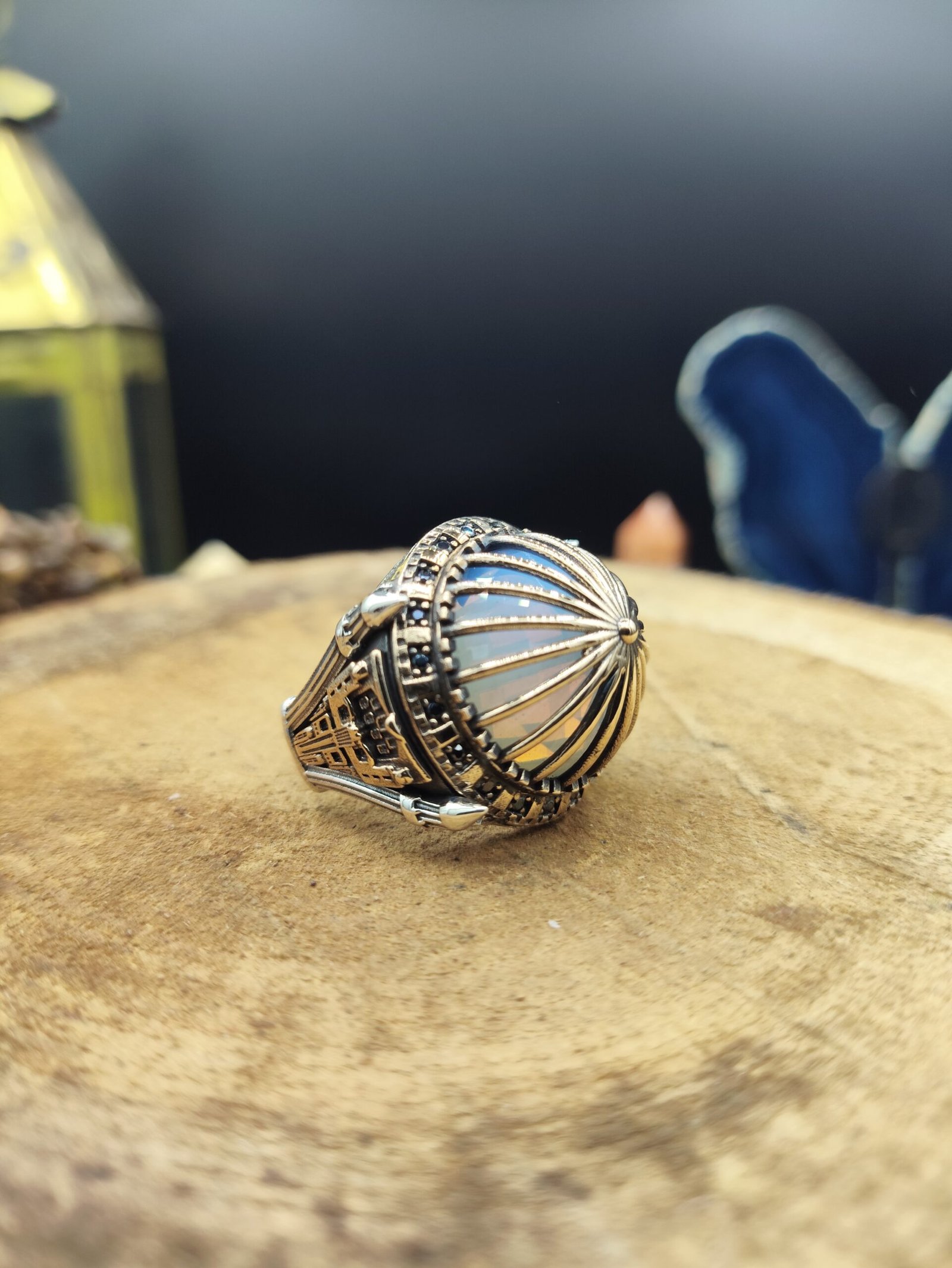 Kubbe tasarım 925 ayar gümüş erkek yüzük, modern ve zarif çizgileri klasik işçilikle birleştirerek şıklık ve estetiği ön plana çıkarır. Özel kubbe formu, yüzüğe benzersiz bir duruş ve karakter kazandırır.