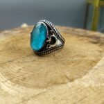 Turkuaz Taşlı Kenarları Hilal Detaylı 925 Ayar Gümüş Erkek Yüzük 15.45 gram